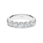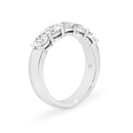 A timeless design that symbolises a lasting love. This beautiful diamond ring graces the finger with 5 sparkling round-brilliant cut diamonds with a tw. of 1.25ct set in delicately sculpted shared prongs. The ring features a double base for added strength and a classic half round band. Handmade in 9ct or 18ct white gold.