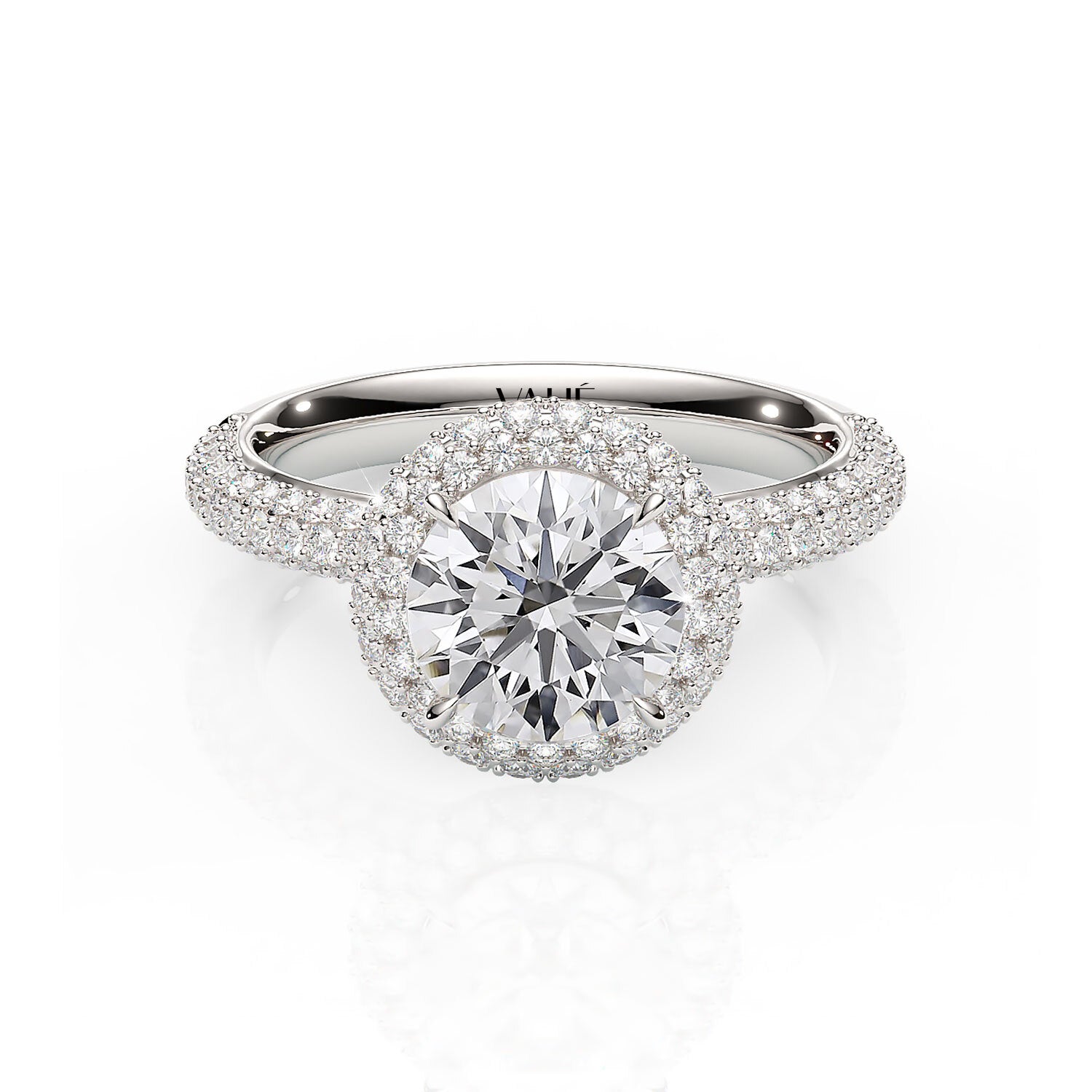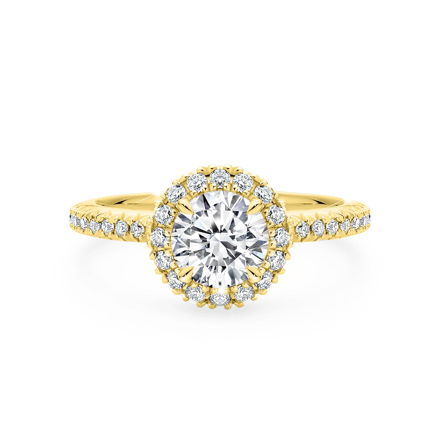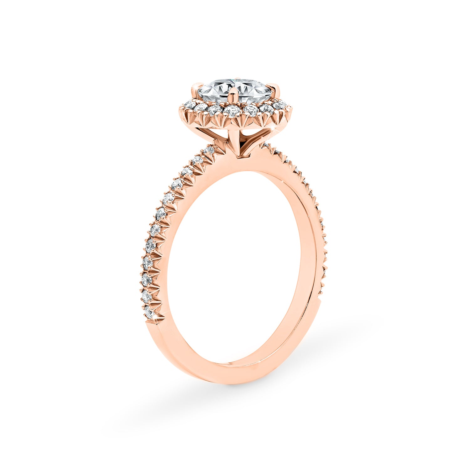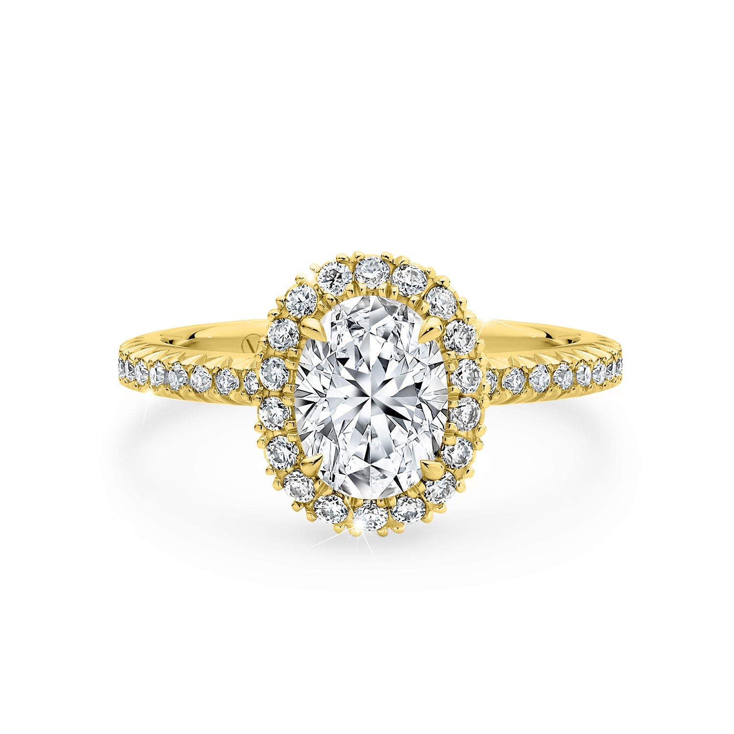 Elevate your sparkle with our halo rings featuring side accent diamonds. These designs bring extra brilliance and detail, with shimmering stones that flow down the band and amplify your centrepiece.