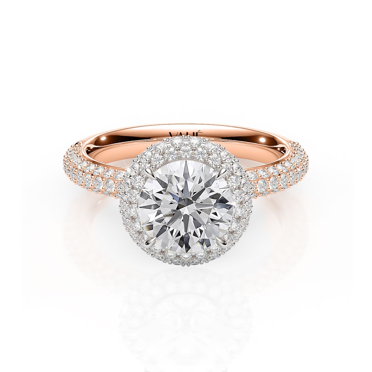 ROSE | Triple Row Pavé Round Brilliant Diamond Ring in Rose & White Gold