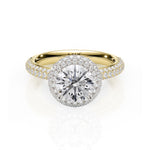 ROSE | Triple Row Pavé Round Brilliant Diamond Ring in Yellow & White Gold