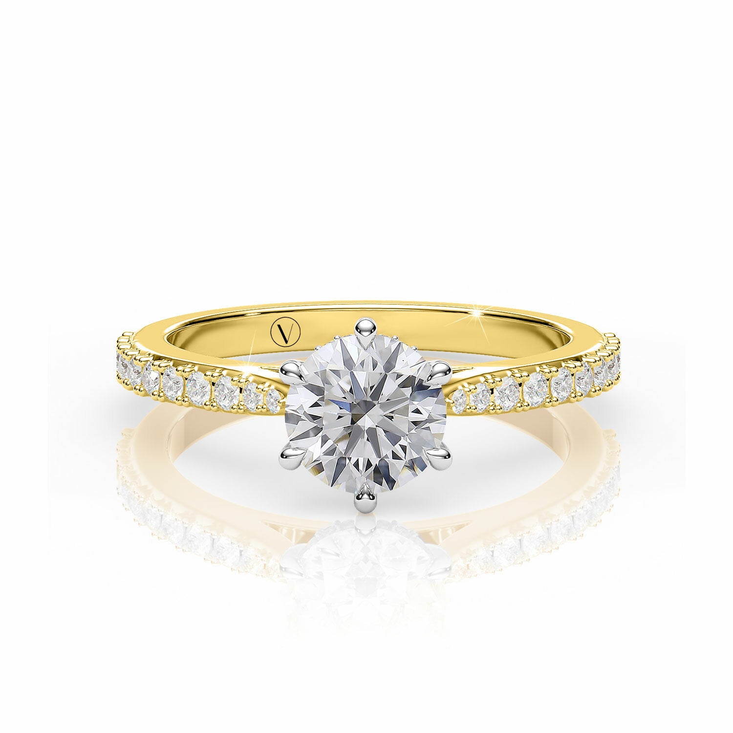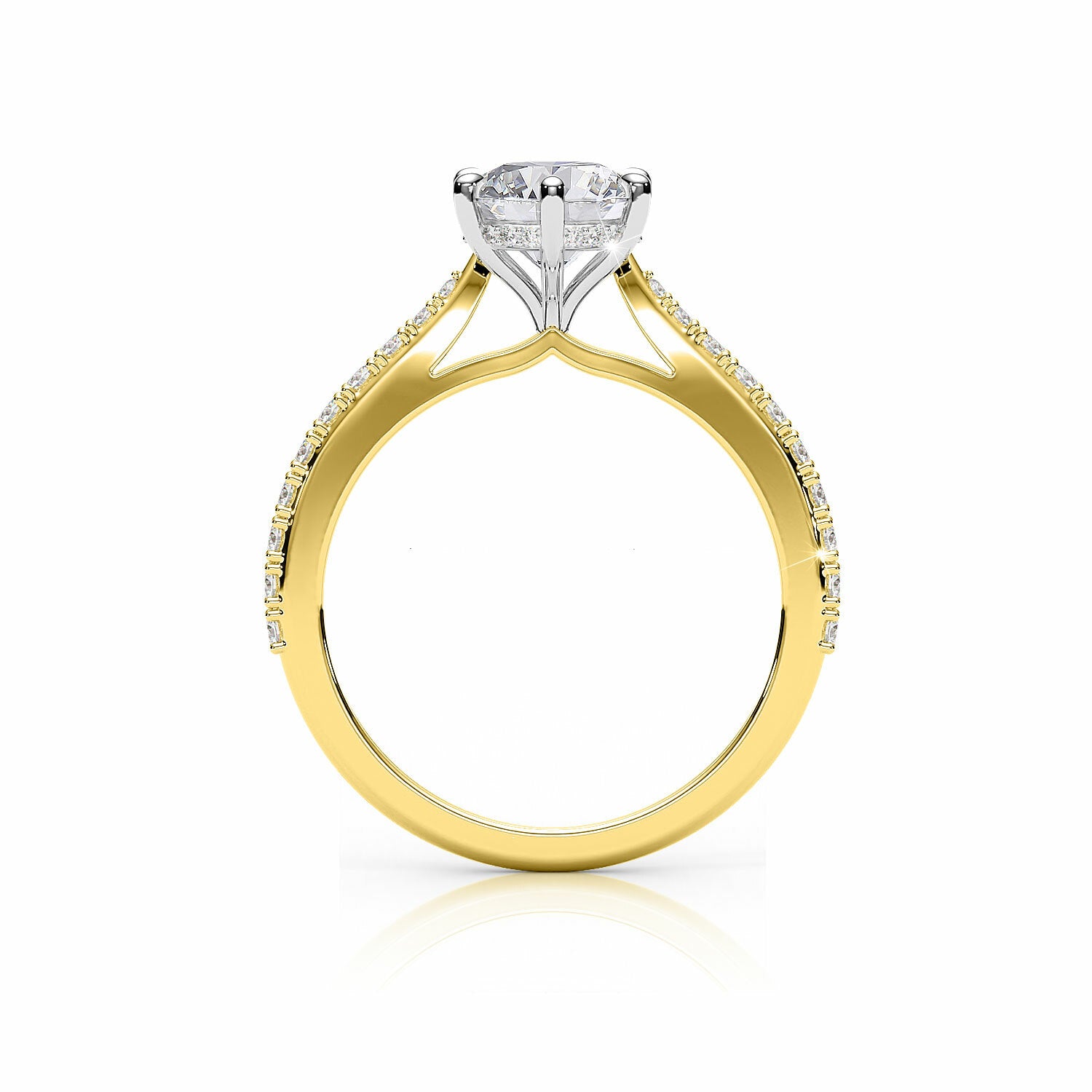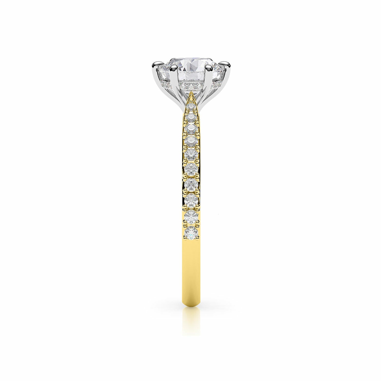 ADRIANA | Tapered Solitaire Round Brilliant Diamond Ring in Yellow & White Gold