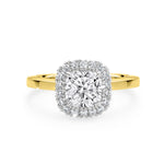 ARI | Scalloped Pavé Cushion Diamond Ring in Yellow & White Gold
