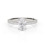 ADALET | Pavé Solitaire Oval Shape Diamond Ring in Platinum