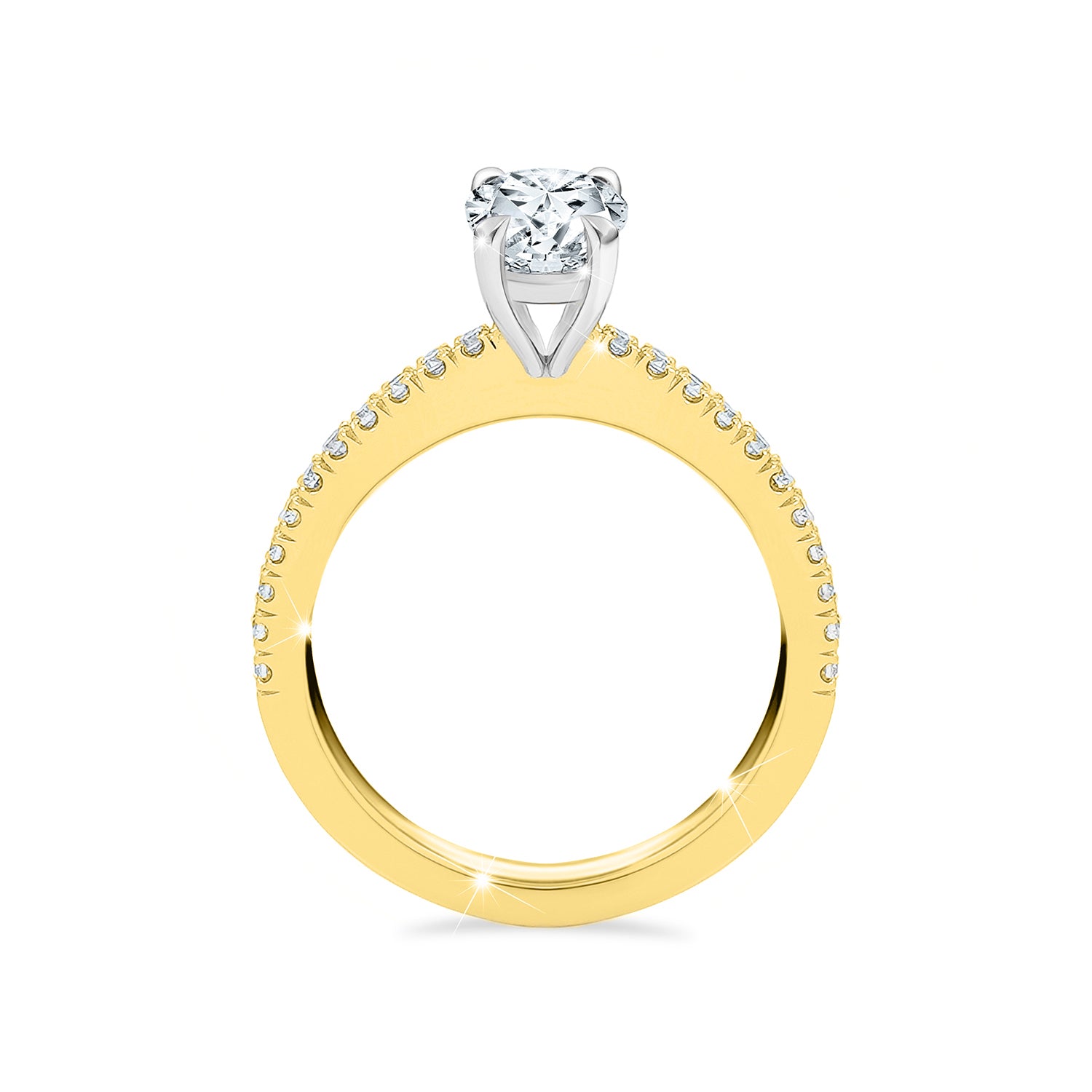 ADALET | Pavé Solitaire Oval Shape Diamond Ring in Yellow & White Gold