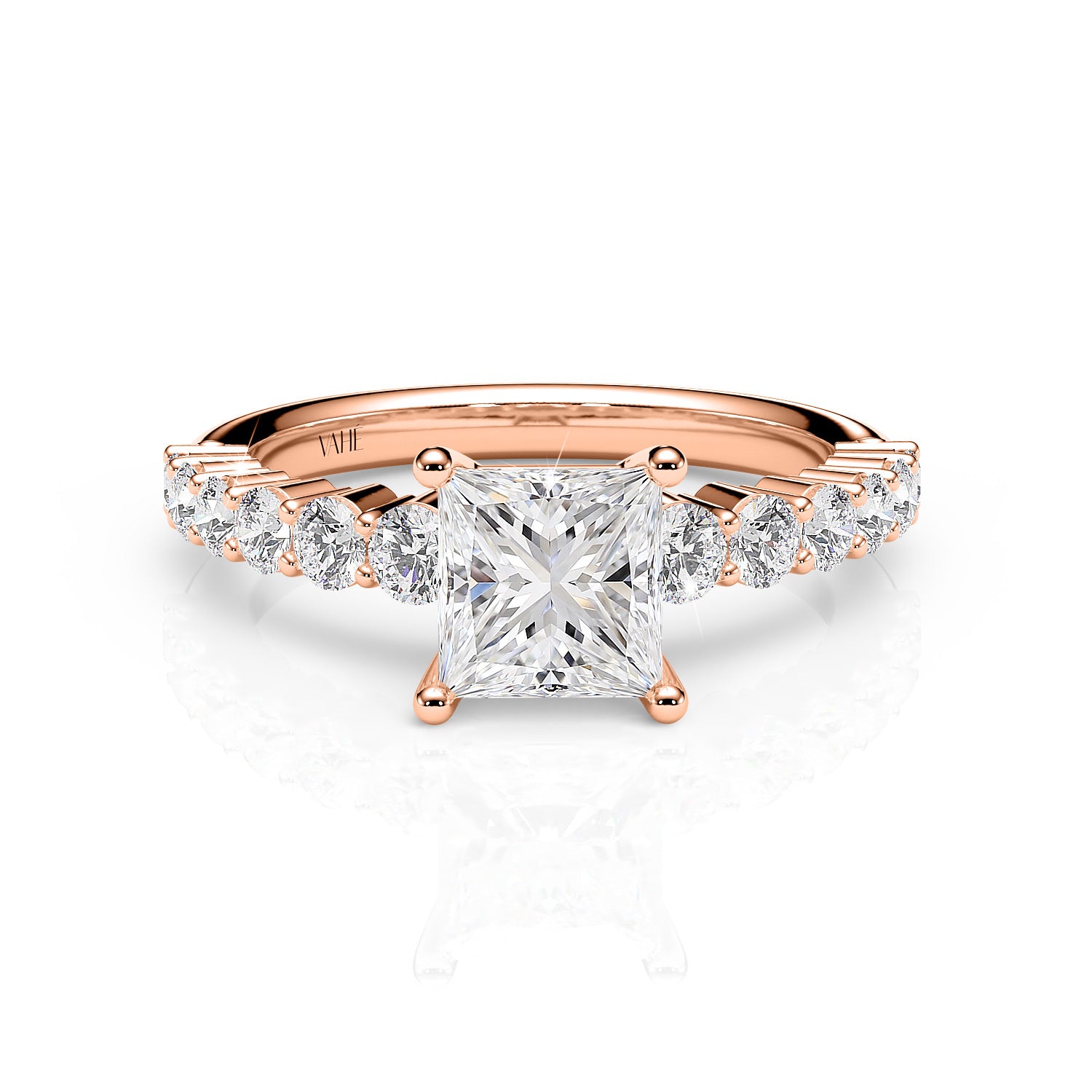 BROOKLYN | Claw Set Tapered Solitaire Princess Diamond Ring in Rose Gold