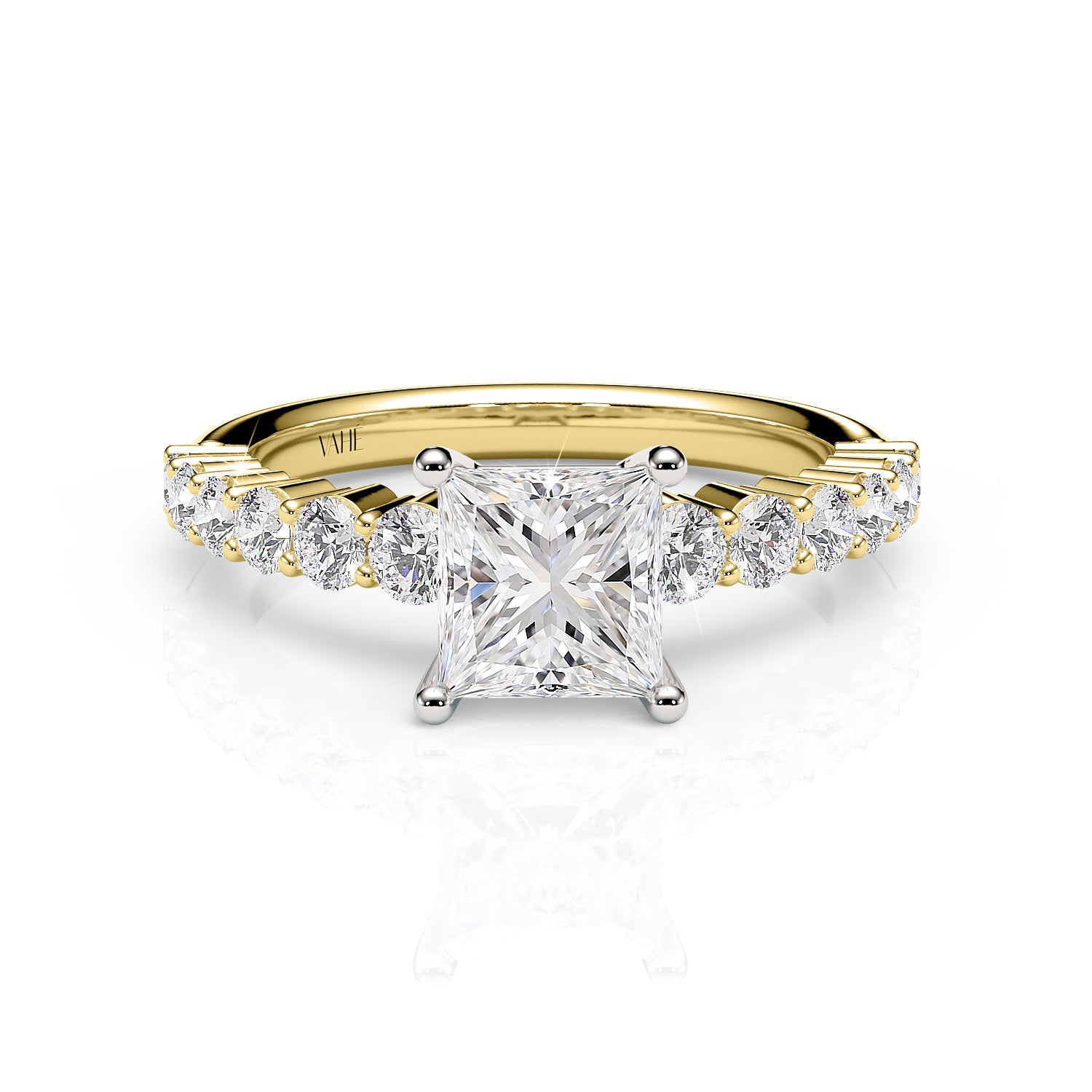 BROOKLYN | Claw Set Tapered Solitaire Princess Diamond Ring in Yellow & White Gold