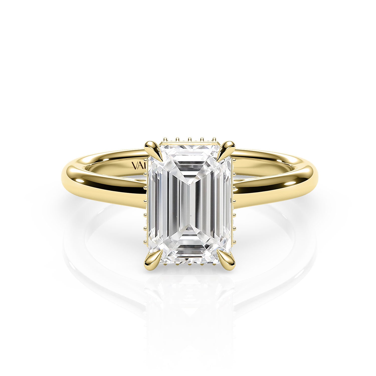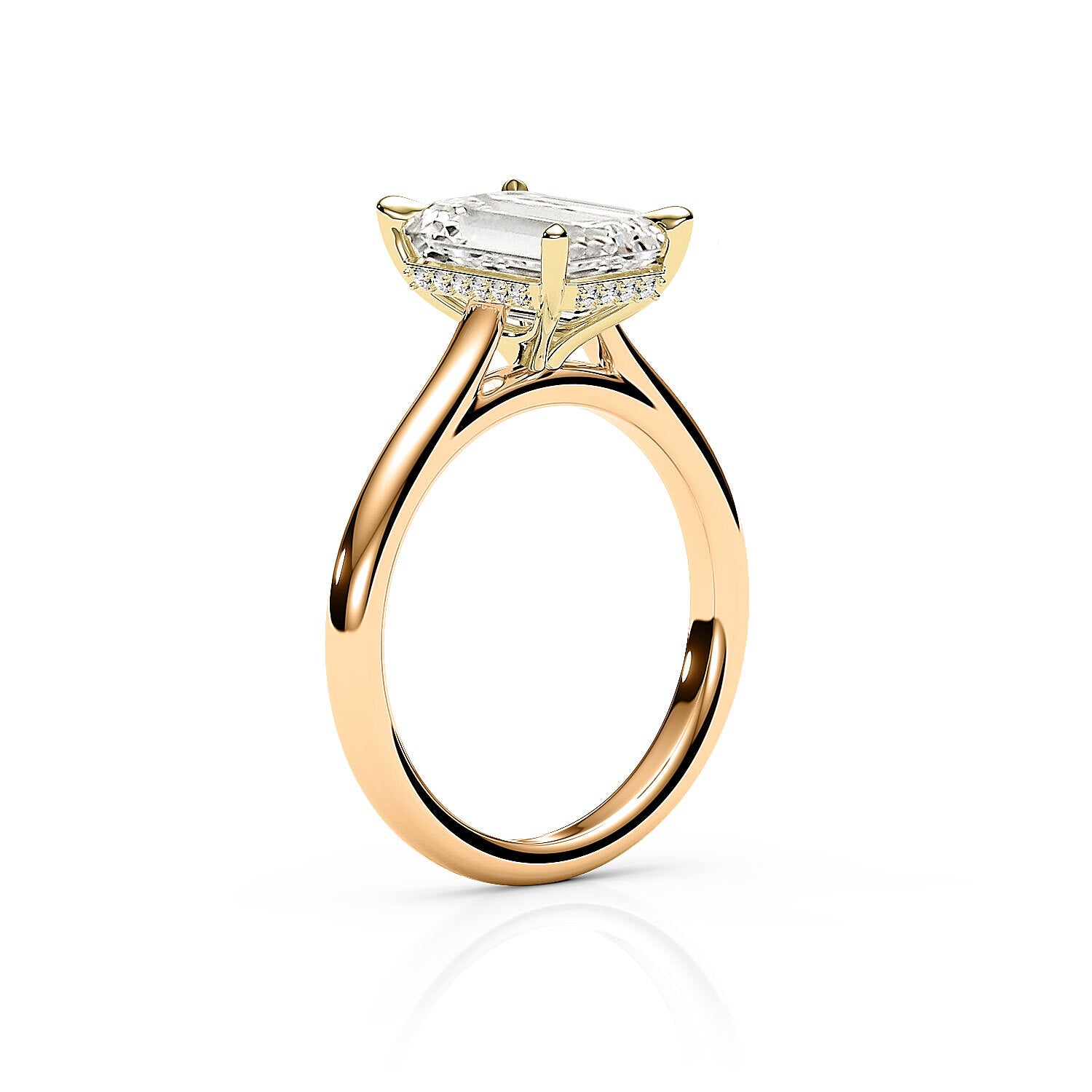 JENNET | Cathedral Hidden Halo Emerald Diamond Ring in Yellow Gold