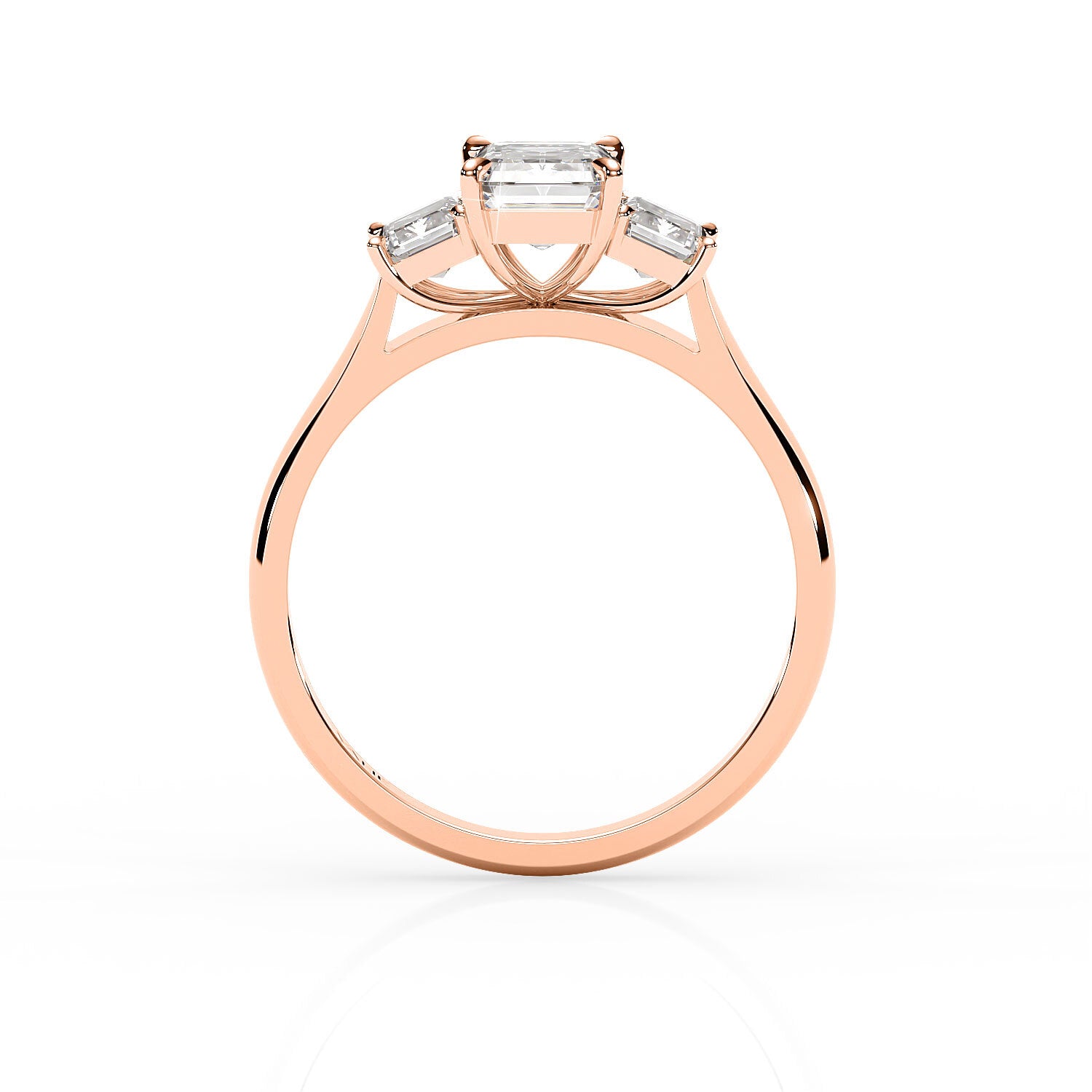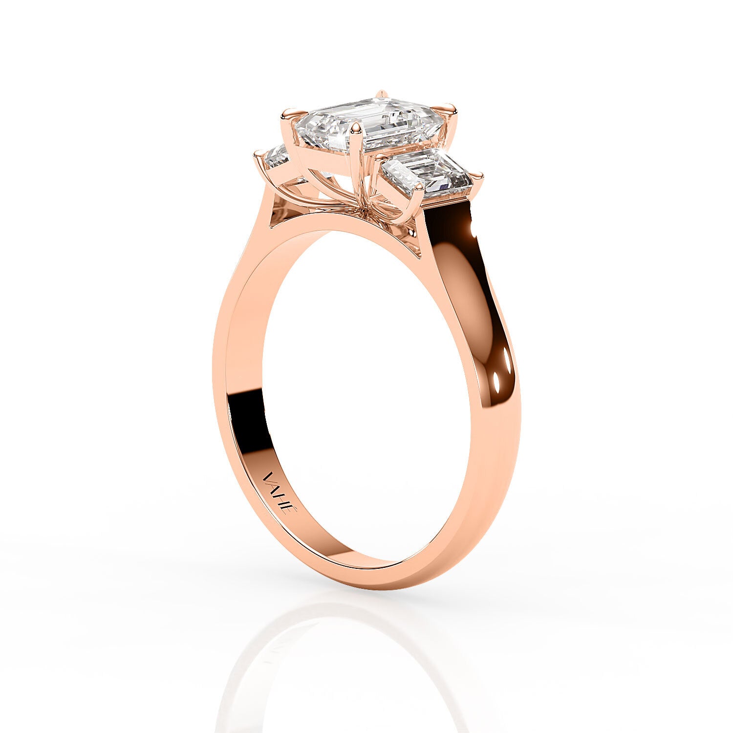 CELESTE | Three Stone Emerald Cut Diamond Ring in Rose Gold