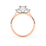 CELESTE | Three Stone Emerald Cut Diamond Ring in Rose & White Gold