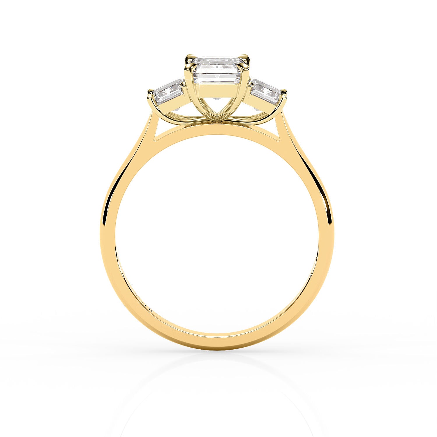 CELESTE | Three Stone Emerald Cut Diamond Ring in Yellow Gold