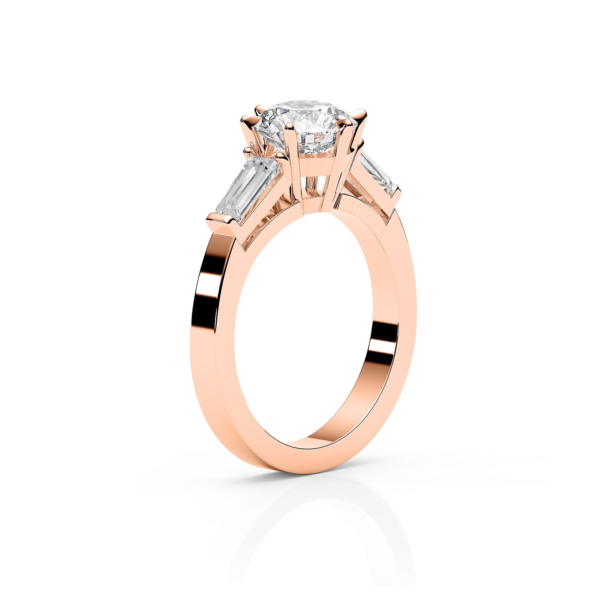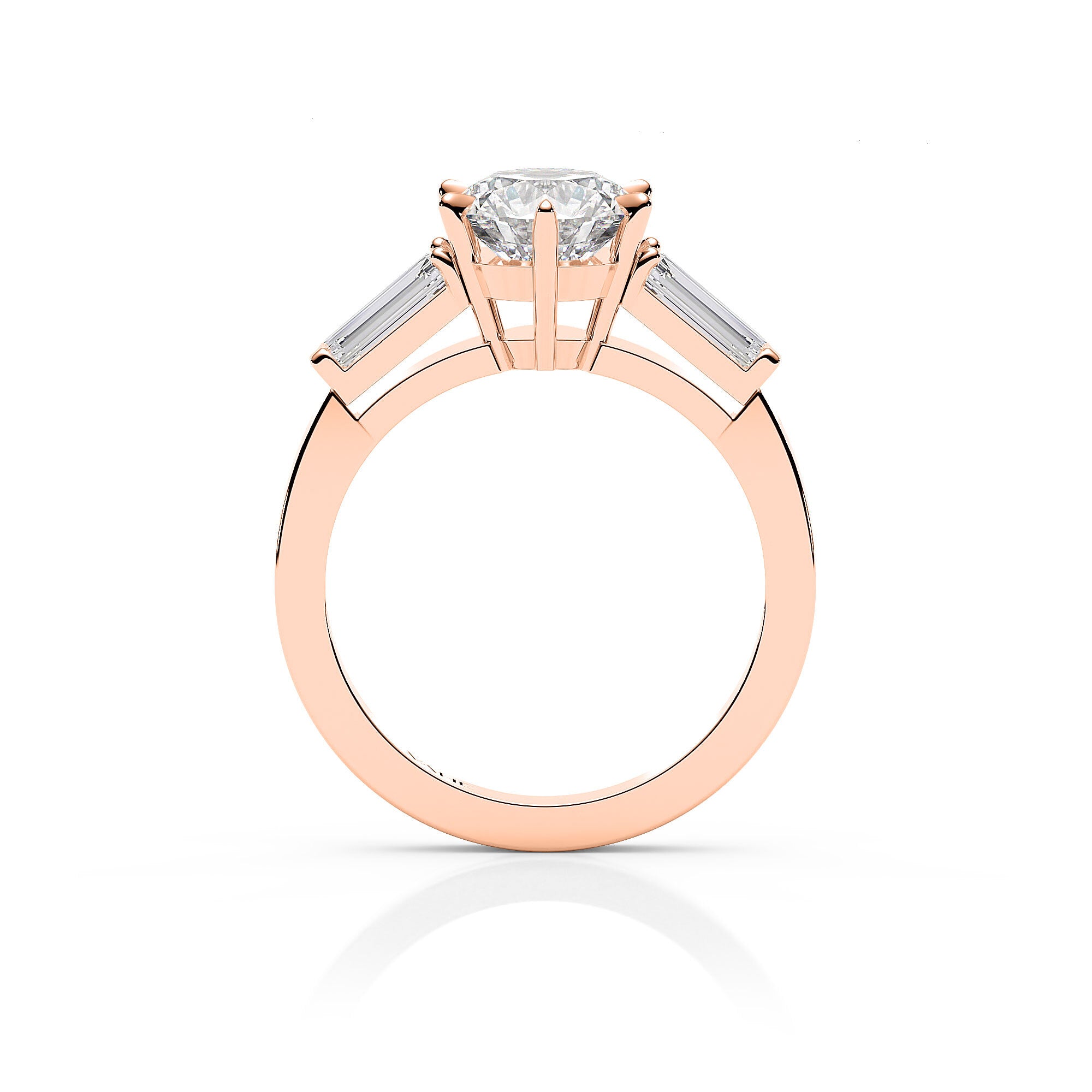 EMMA | Round Brilliant & Tapered Baguette Diamond Ring in Rose Gold