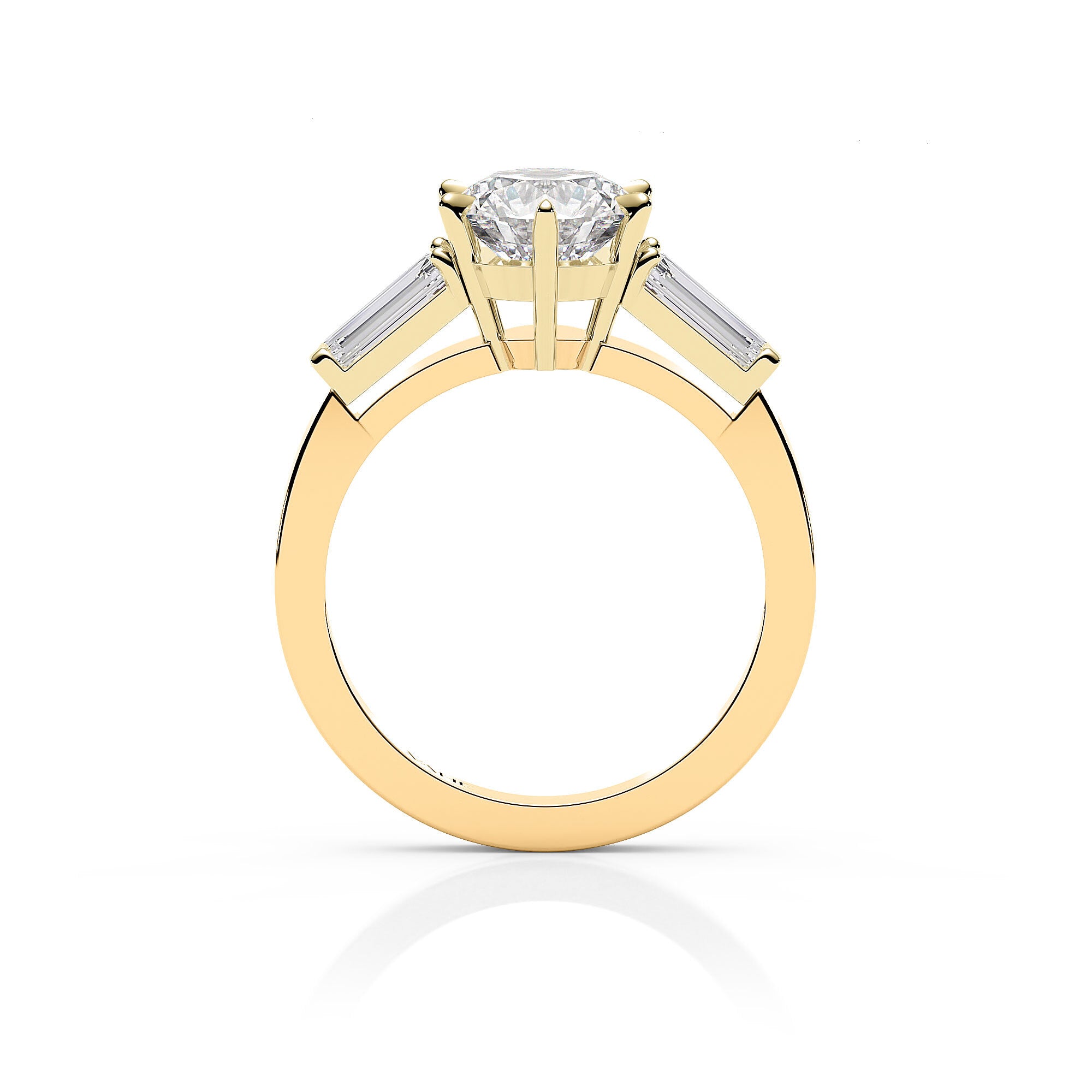 EMMA | Round Brilliant & Tapered Baguette Diamond Ring in Yellow Gold
