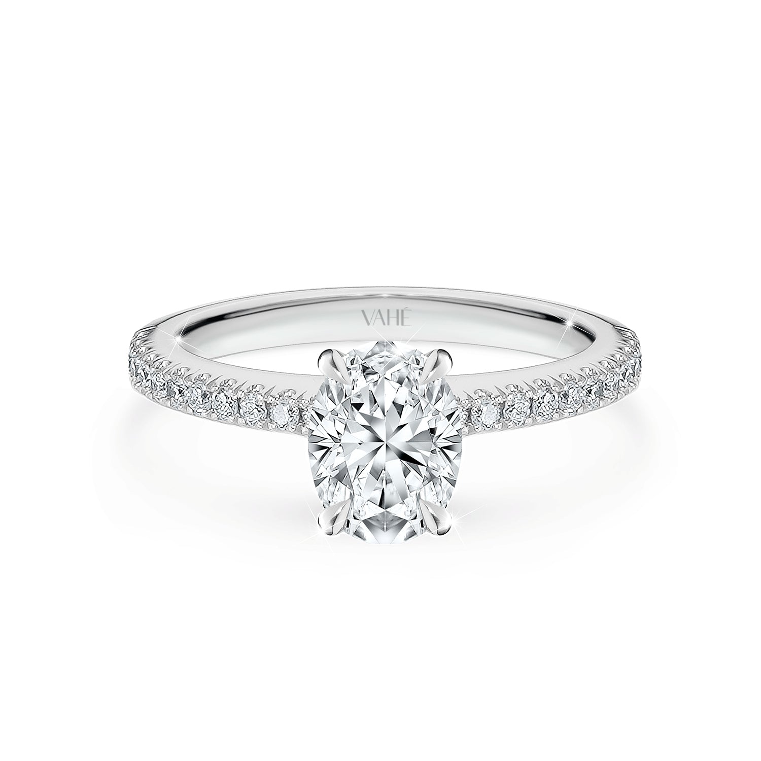 ADALET | Pavé Solitaire Oval Shape Diamond Ring in White Gold