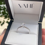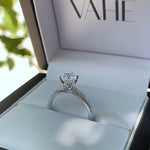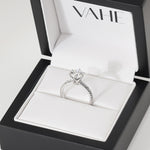 ELORA | French Pavé Round Brilliant Diamond Ring in White Gold