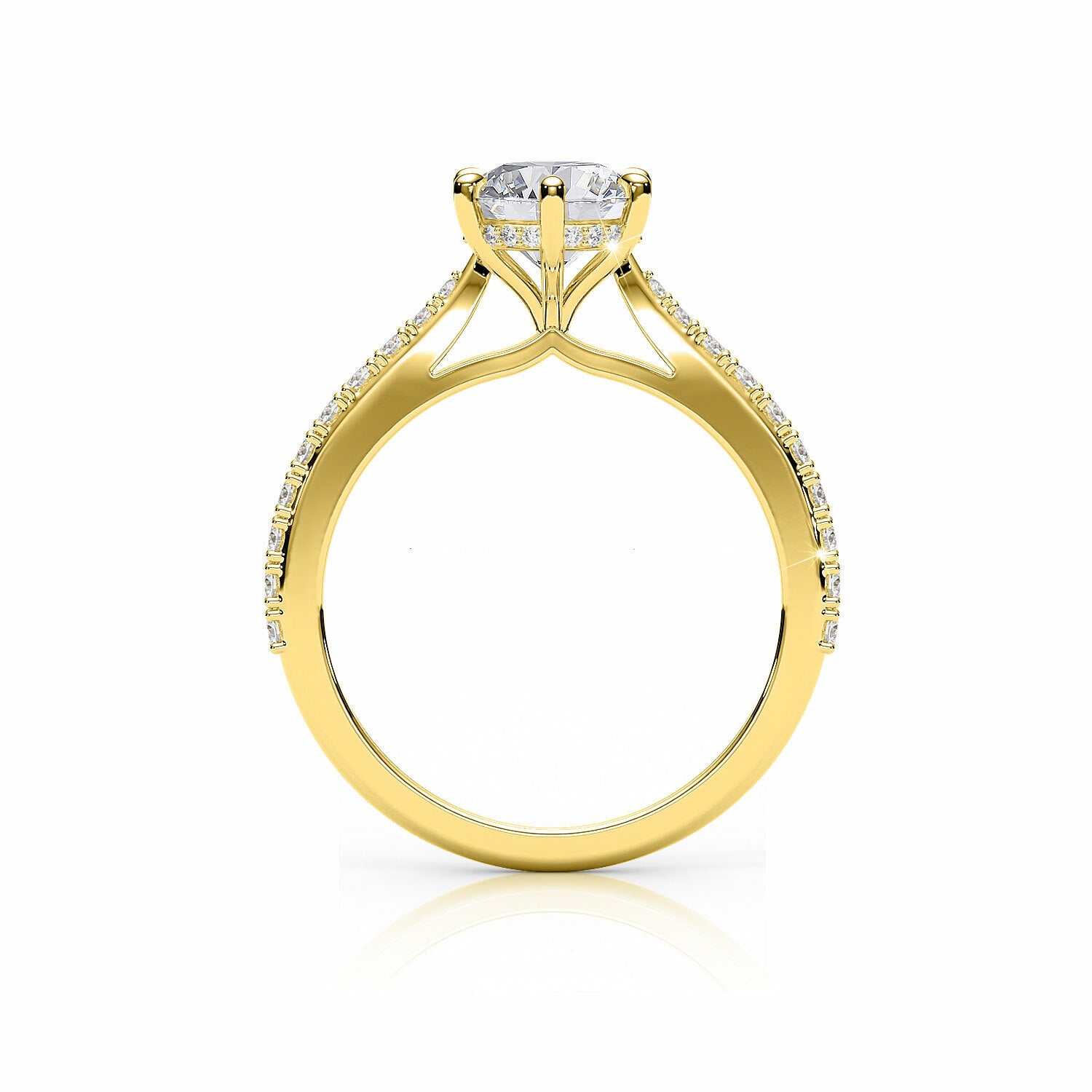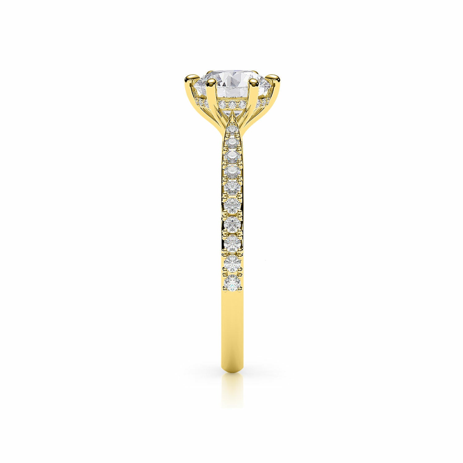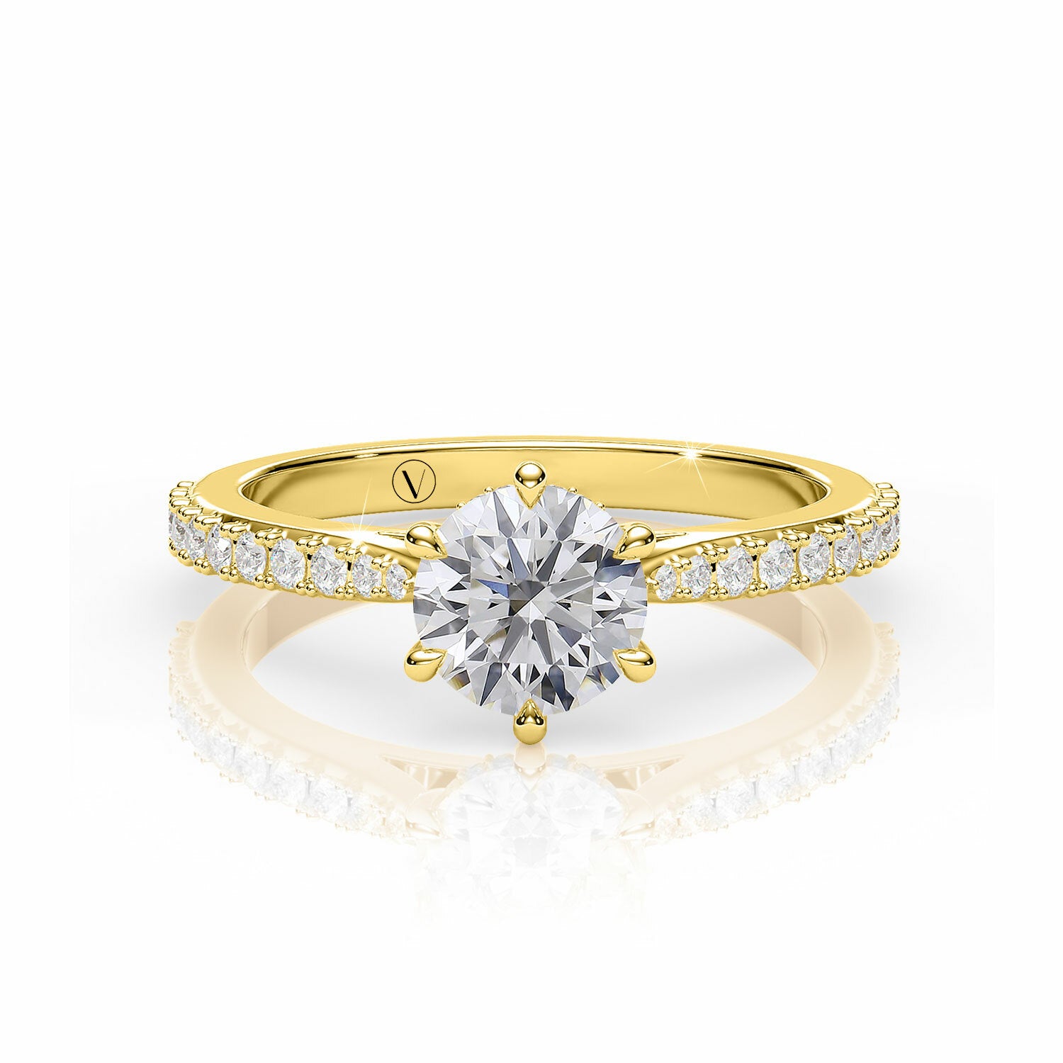 ADRIANA | Tapered Solitaire Round Brilliant Diamond Ring in Yellow Gold