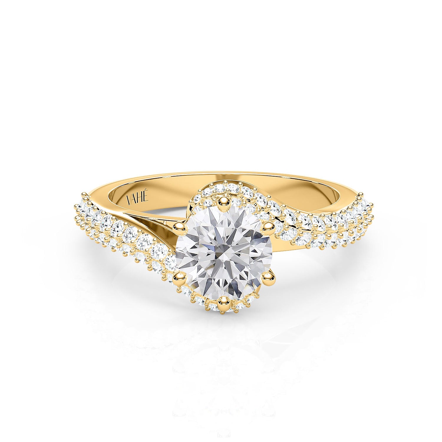 AMARA | Double Row Pavé Twist Round Brilliant Diamond Ring in Yellow Gold