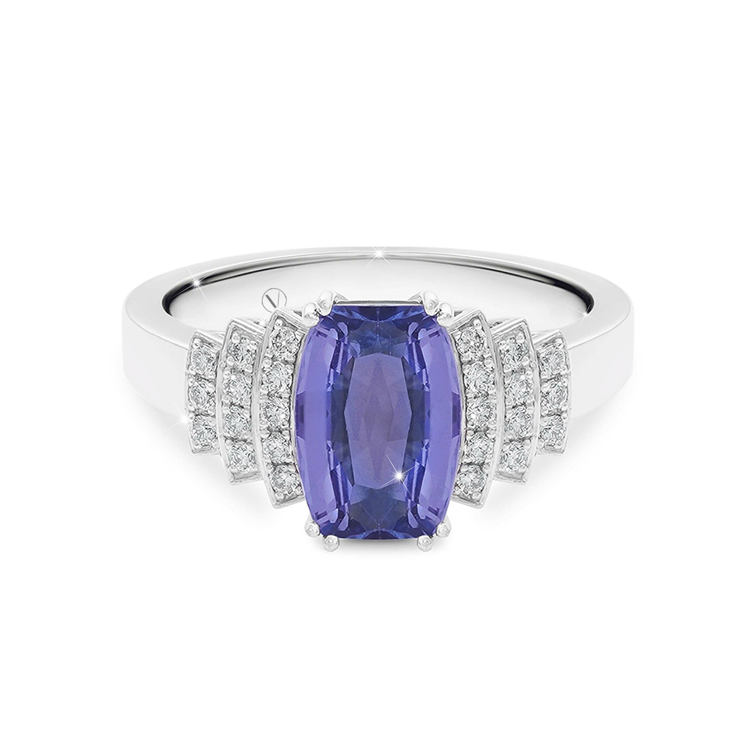 Tanzanite and White Diamond Ring in 18ct White Gold