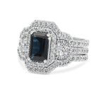 CUSTOM | Emerald Cut Sapphire and White Diamond Art Deco Bridal Set in 18ct White Gold