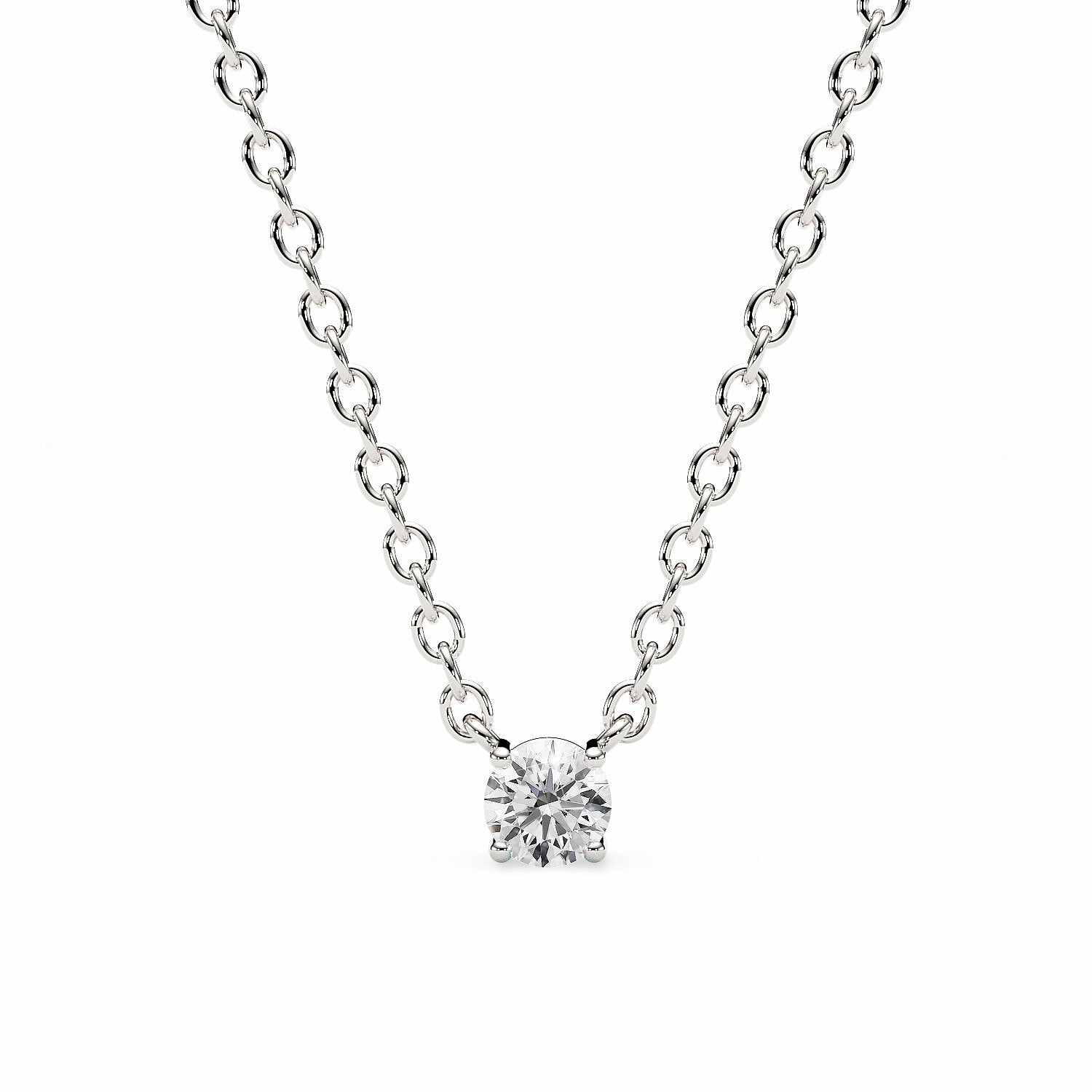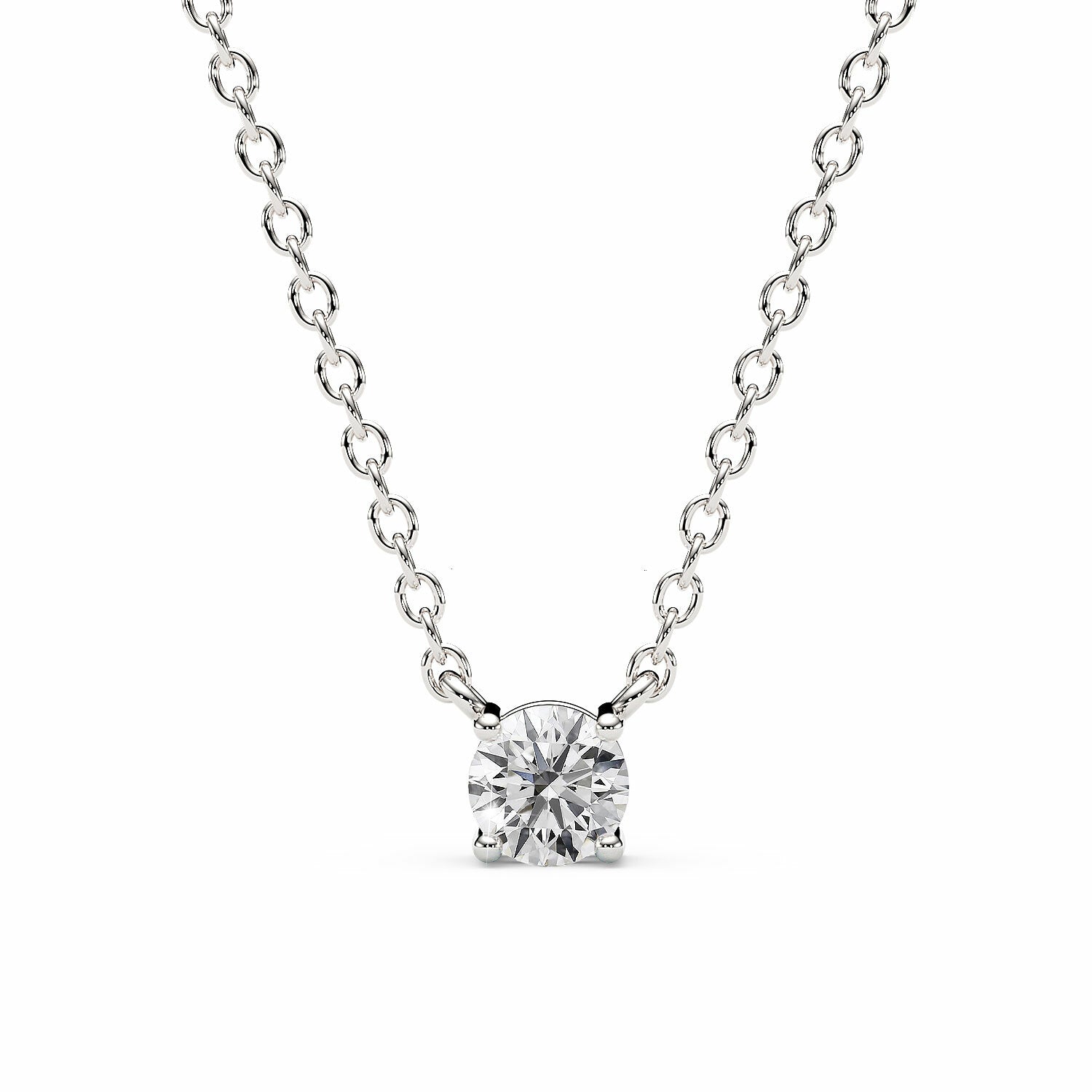ADRIANA | Round Diamond 4 Prong Solitaire Pendant in White Gold