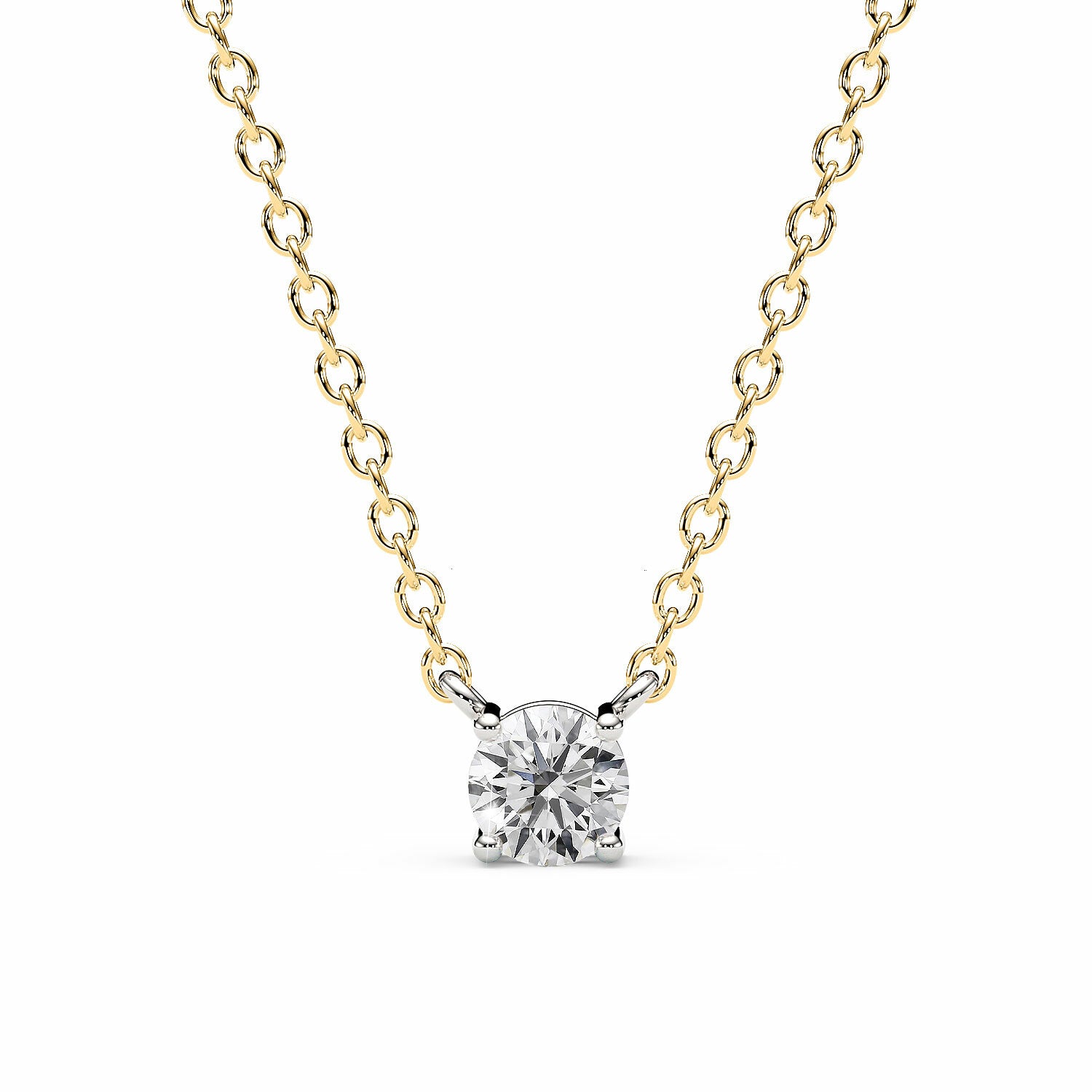 ADRIANA | Round Diamond 4 Prong Solitaire Pendant in Yellow & White Gold