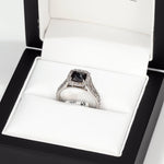 Reverse Set Black Diamond Halo in 18ct White Gold