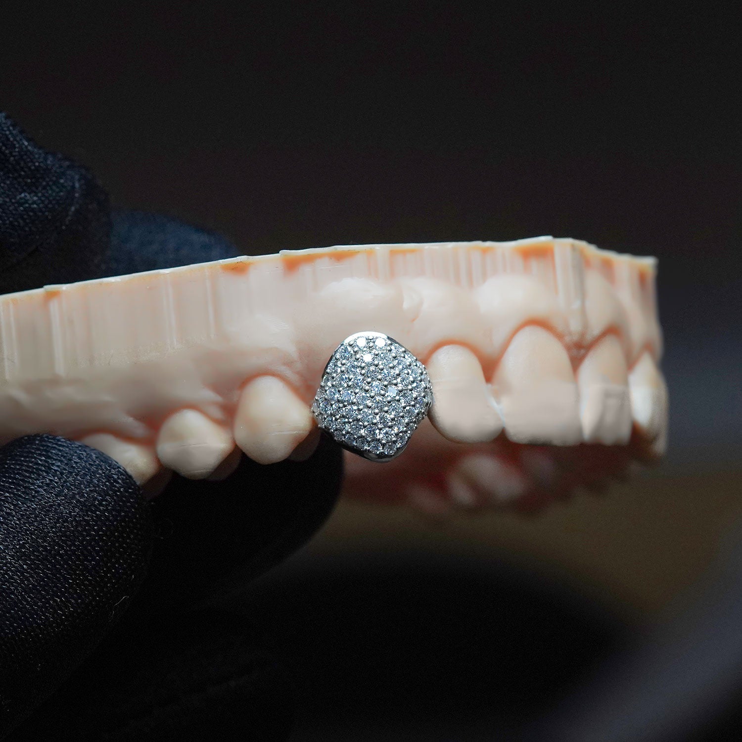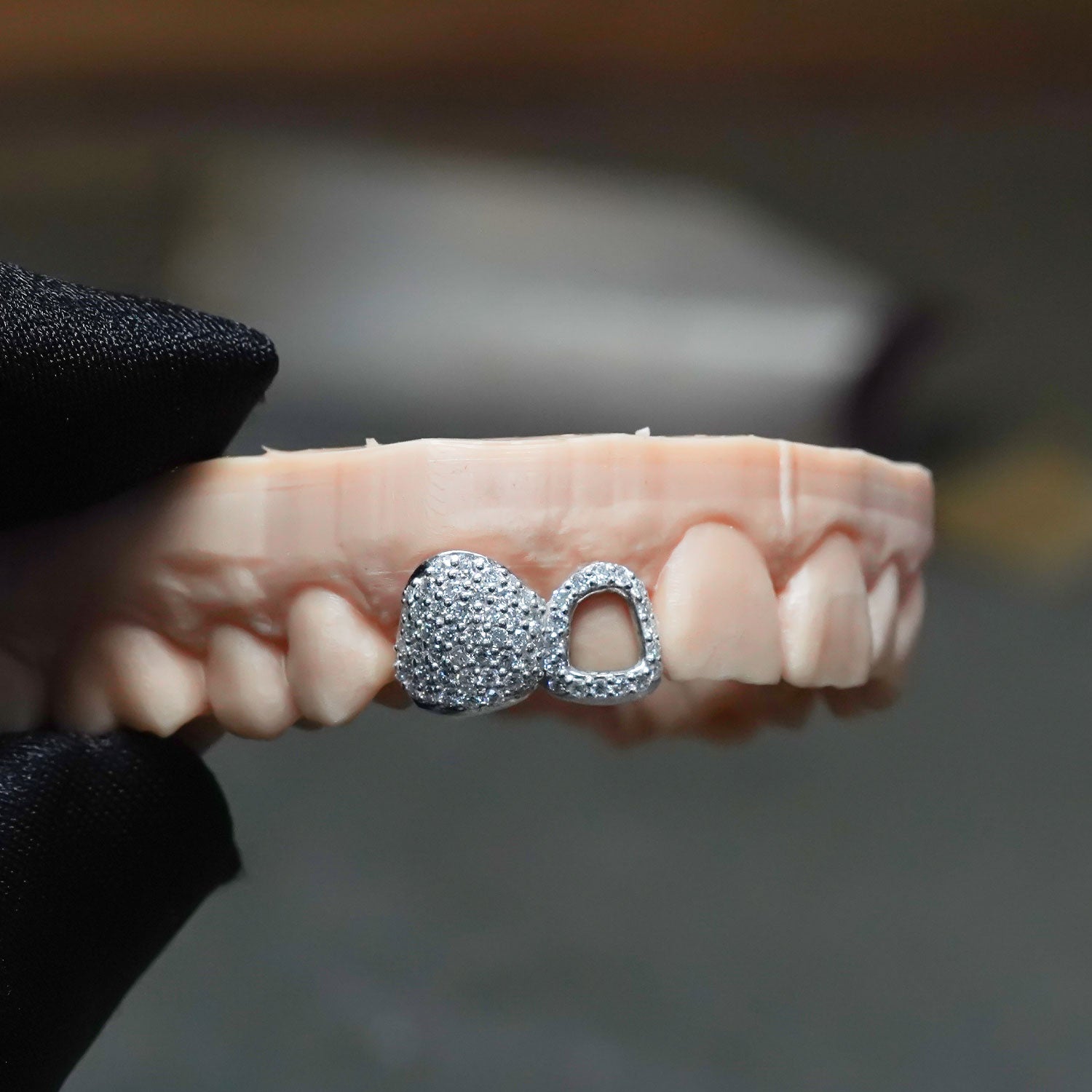 Our Diamond Set Grillz are handcrafted in Melbourne to deliver maximum shine. Whether you’re after a single diamond cap, iced-out fangs or a full top and bottom set, we can create any look you’ve got in mind. Can’t see what you’re after? Get in touch, explore our Custom Grillz Page or Book a Custom Grillz Consultation today.