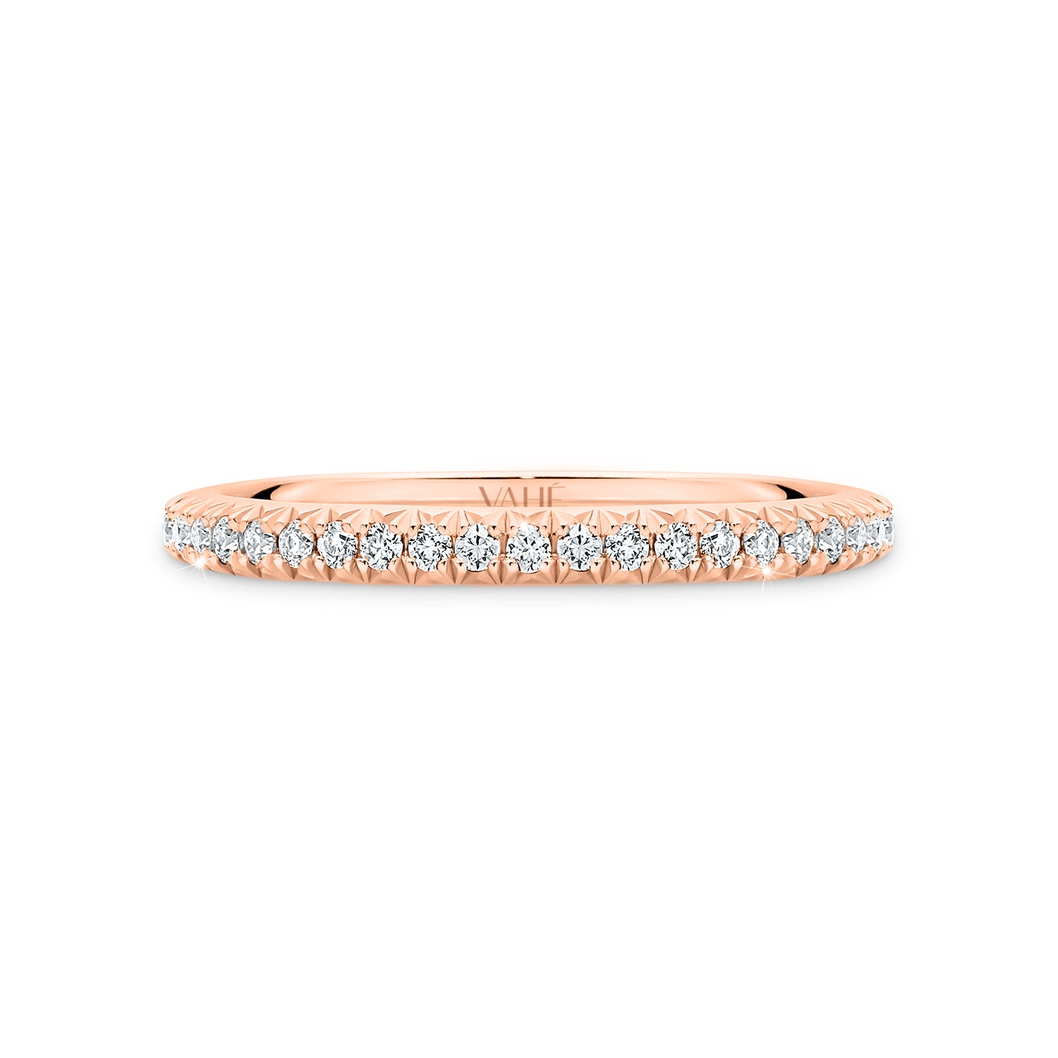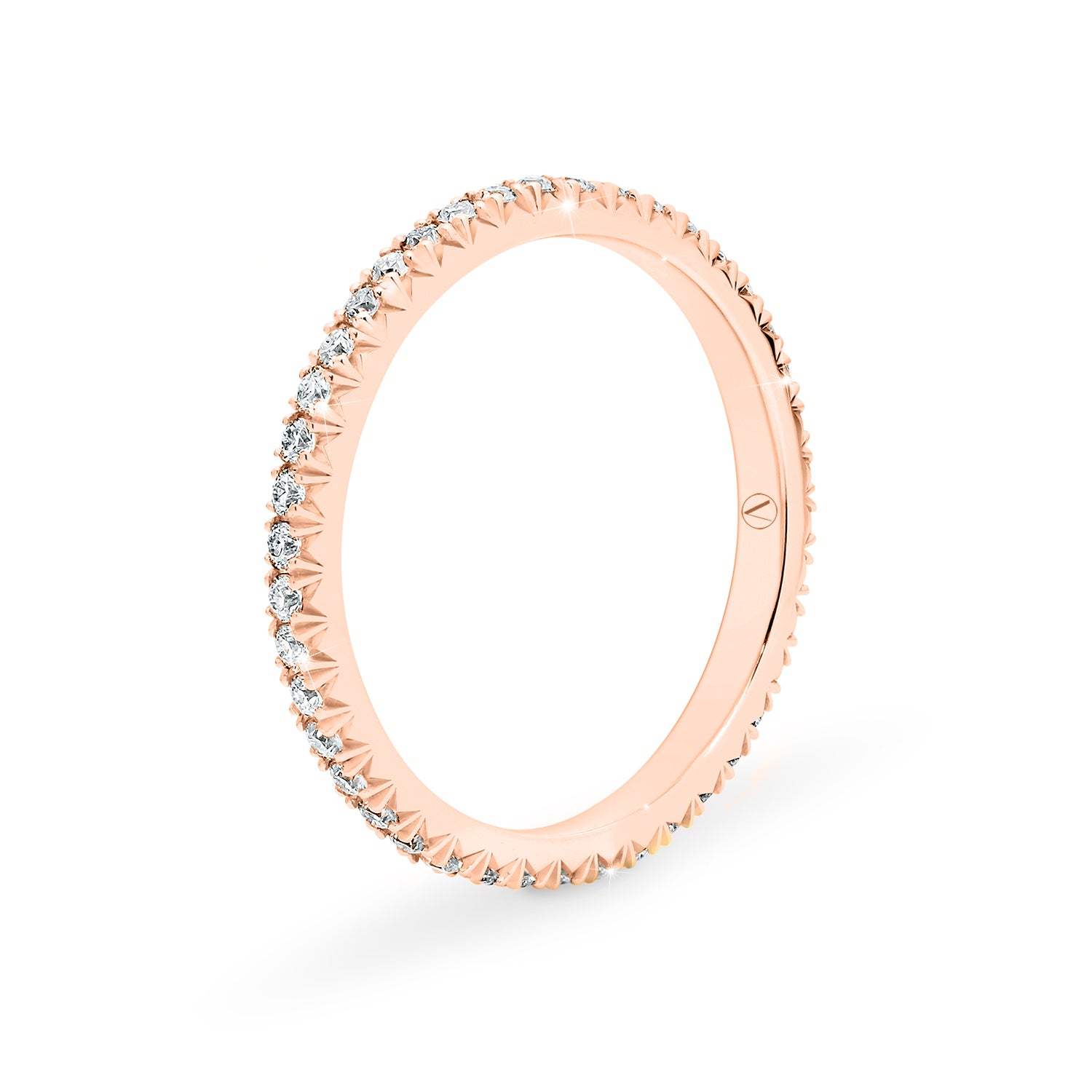 A precision-cut french pavé full eternity ring set with 0.42ct tw. of round brilliant cut diamonds. A compliment too many engagement rings or perfect as an anniversary ring. Handmade in either 9ct or 18ct rose gold.