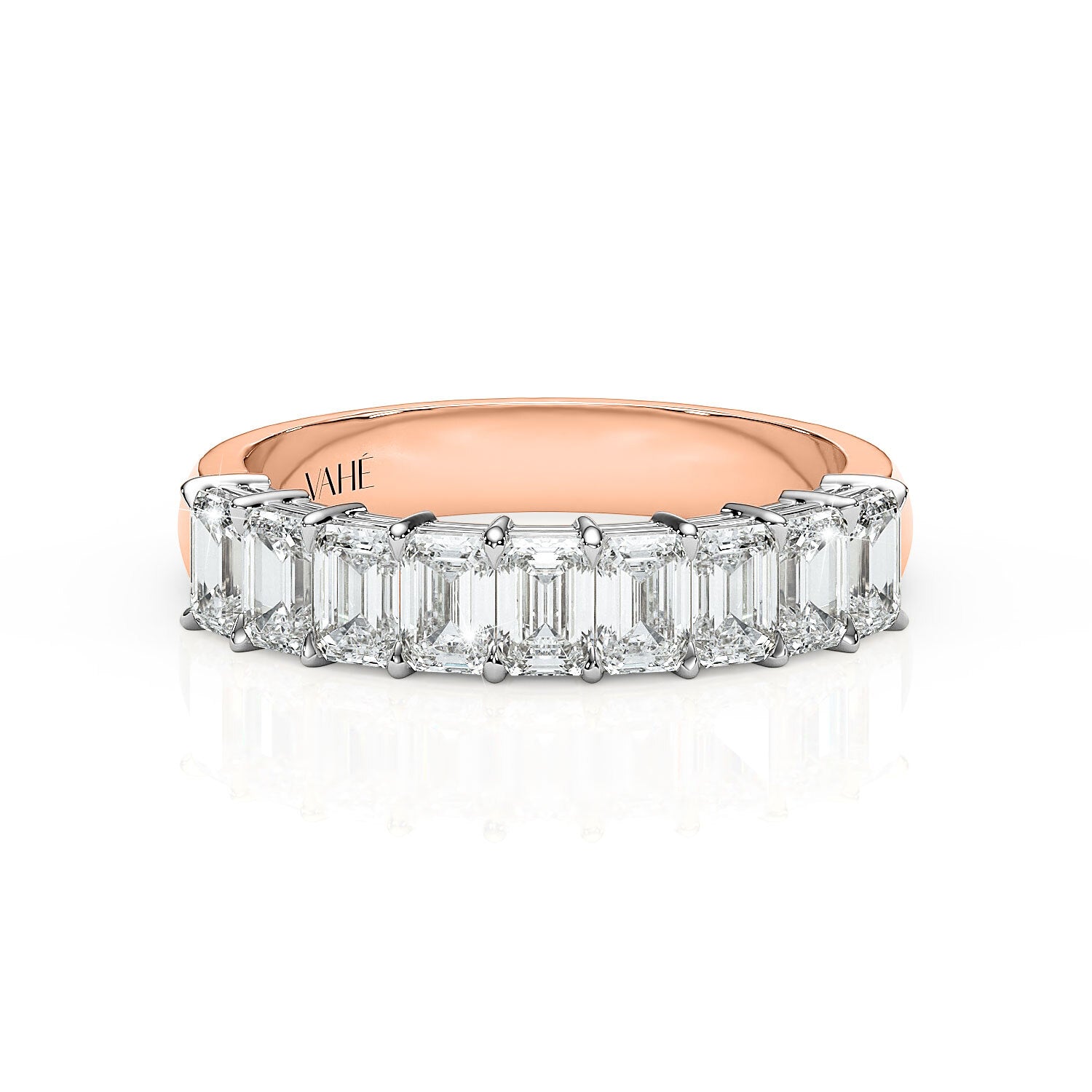 AURORA | 9 Stone Shared Prong Emerald Diamond Ring in Rose & White Gold (1.60ct tw.)