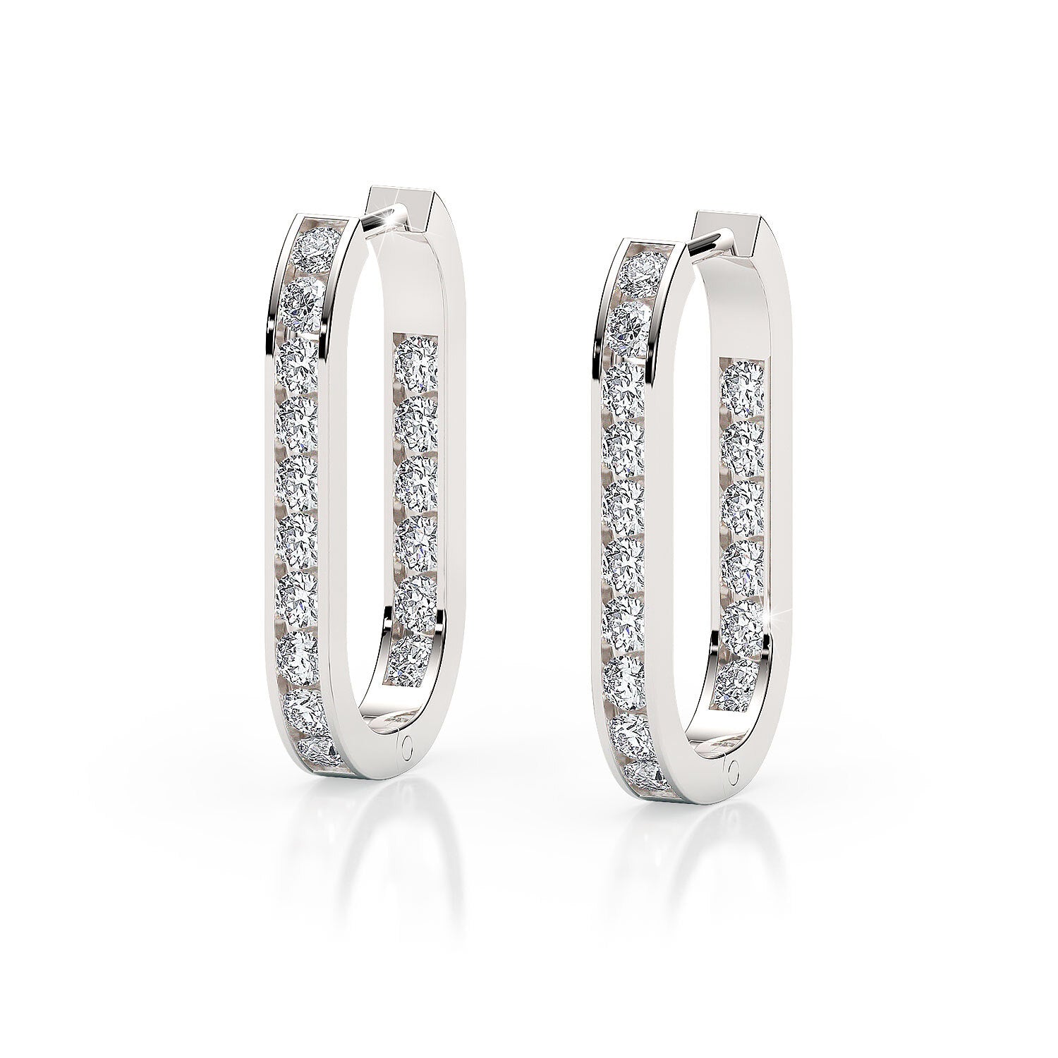 Perfect for a look of sheer elegance, these elongated huggie earrings feature rows of illuminating round-brilliant diamonds channel set on both faces. Handmade in platinum.