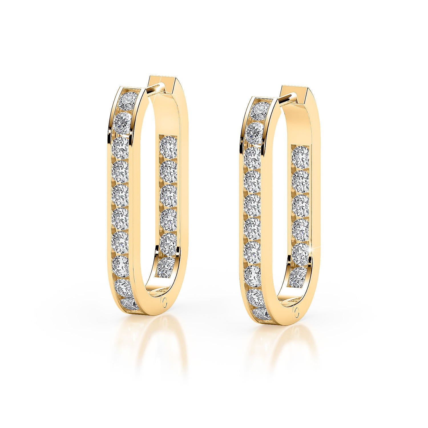 Perfect for a look of sheer elegance, these elongated huggie earrings feature rows of illuminating round-brilliant diamonds channel set on both faces. Handmade in 9ct or 18ct yellow gold.