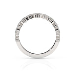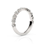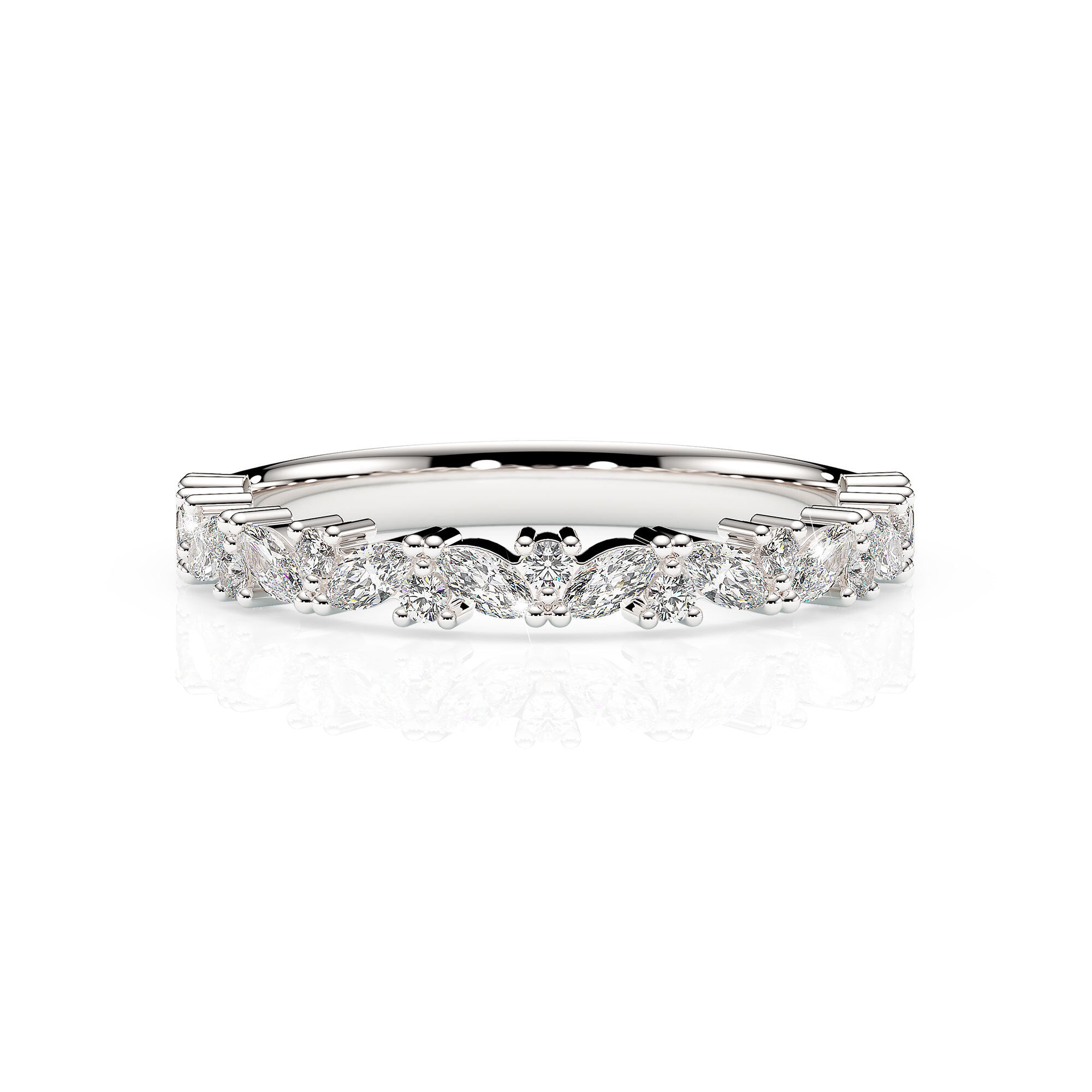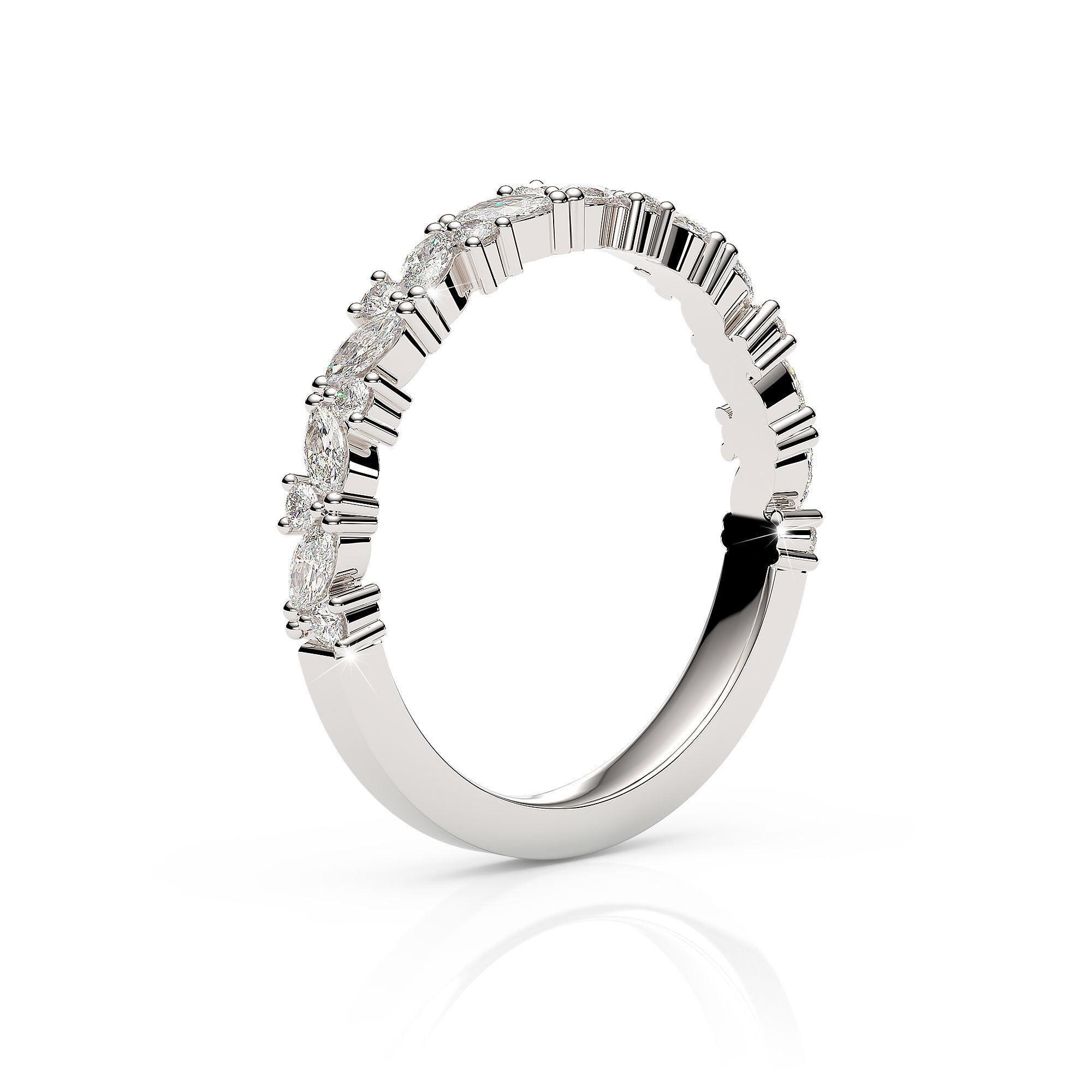 A stunning ring featuring 0.38ct tw. of alternating marquise and round diamonds that converge to form a mesmerising pattern across its stylish facade. A compliment too many engagement rings or perfect as an anniversary ring. Handmade in platinum 950.