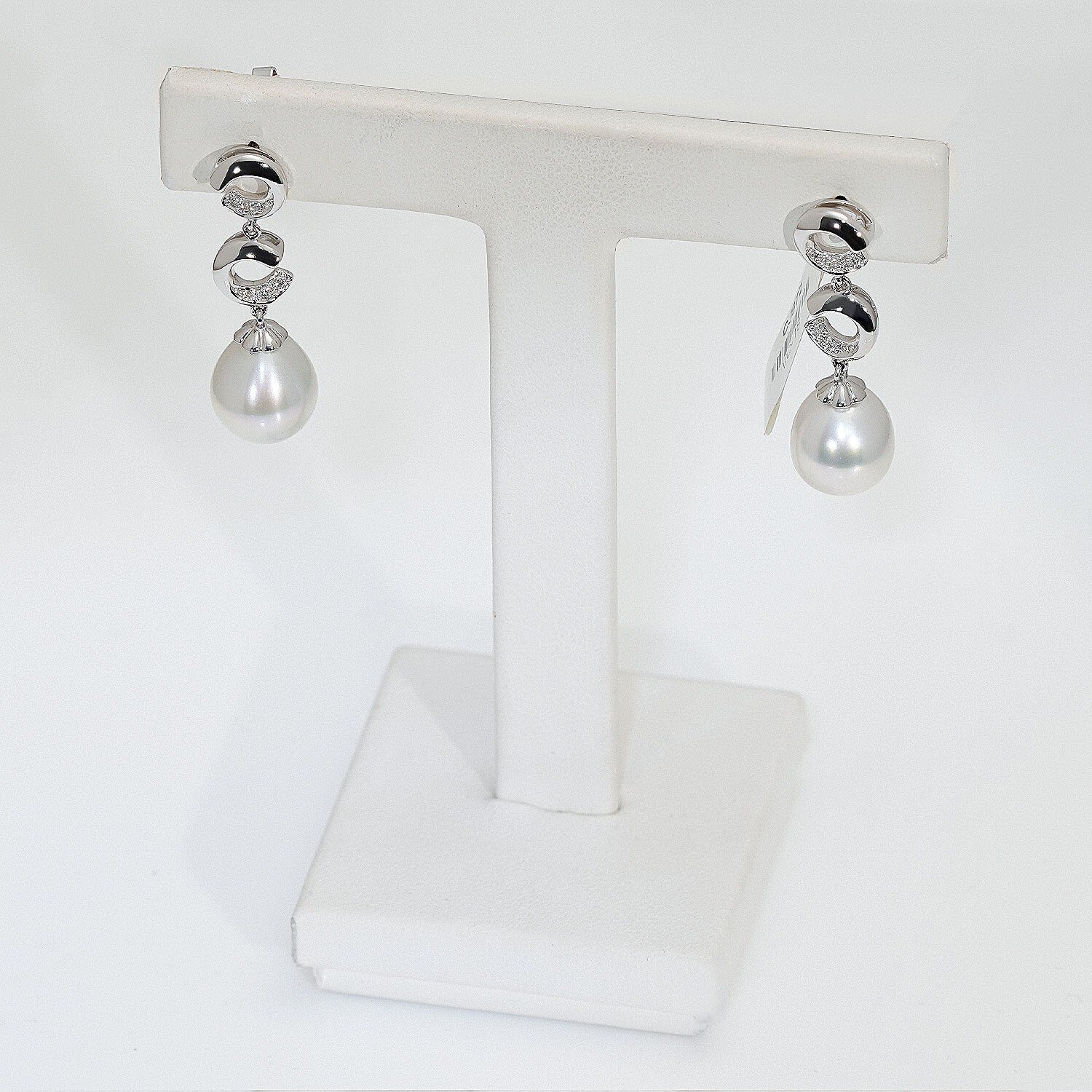 South Sea Pearl & Diamond Drop Earrings in 18ct White Gold