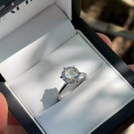 This beautiful recently purchased engagement ring features a dazzling 3.01ct IGI certified E/VS1 round brilliant cut lab grown diamond held in place by six pear shaped claws. Under the central diamond is a delicate hidden halo of 8 x D/VS round brilliant cut lab grown diamonds with a tw. of 0.08ct. All elegantly set on a 2.2mm wide rounded band. Handmade in 18ct white gold.