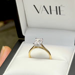 JENNET | Cathedral Hidden Halo Elongated Cushion Diamond Ring in 18ct Yellow & White Gold