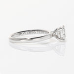 This beautiful recently purchased engagement ring features a dazzling 1.00ct IGI certified E/VVS2 round brilliant cut lab grown diamond held in place by four round claws. Elegantly set on a 2mm wide rounded band. Handmade in 18ct white gold.