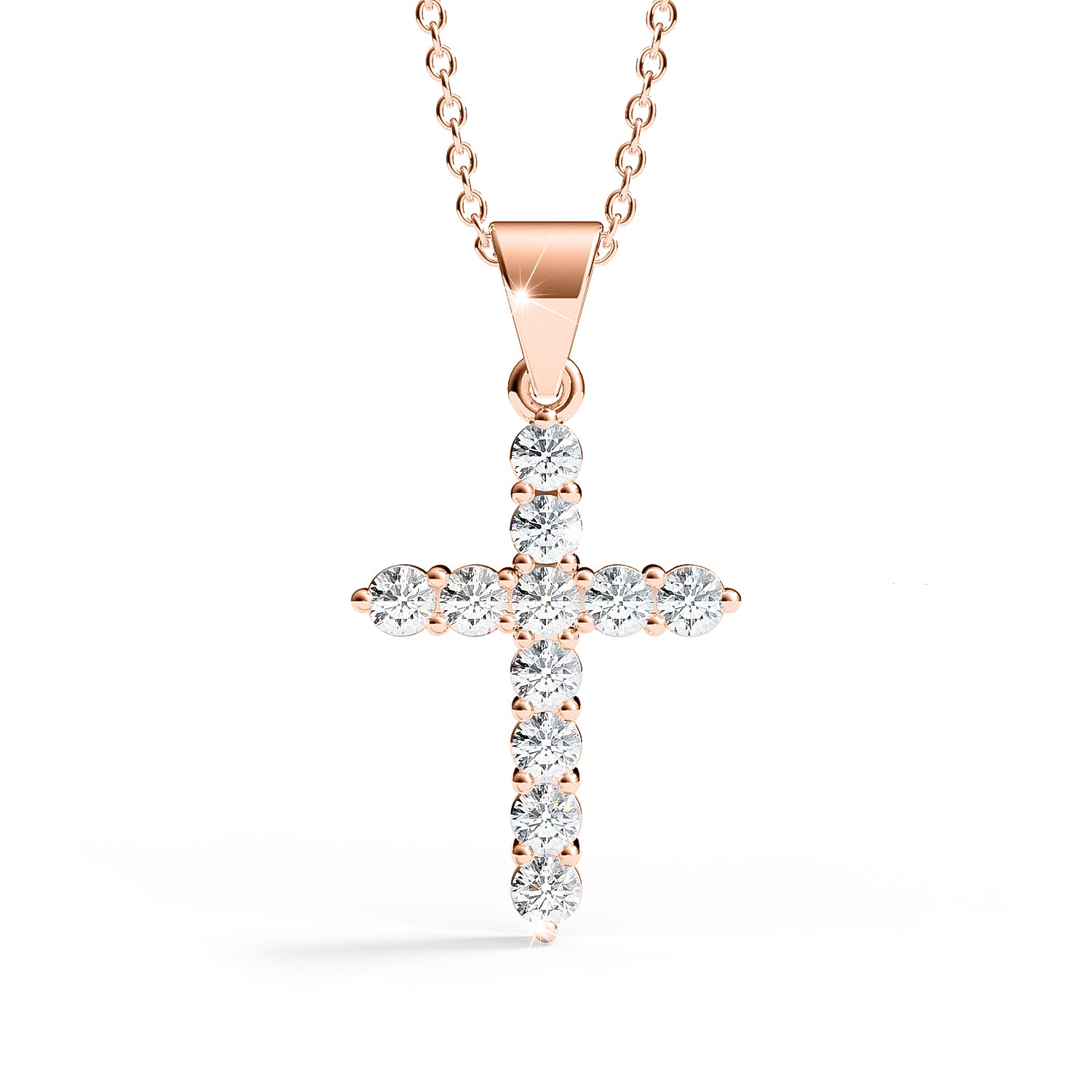 ELENA | Round-Brilliant Diamond Cross Pendant in Rose Gold (0.20ct - 0.60ct)