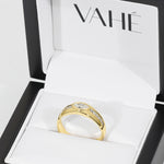 Our client presented us with a ring that she was wanting to be changed, so we removed the diamonds and designed a new one for her. She wanted the ring to have a low profile so she could wear it as a dress ring. In an east-west orientation, we set the marquise diamond in a bezel. The ring's shoulders were channel set with smaller princess cut diamonds (carre-carre cuts). Handmade in 18ct Yellow Gold.