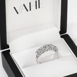 This stunning ring is a testament to the transformative power of skilled craftsmanship and personalised design. Our goal was to preserve the sentimental value of the client's existing diamonds while enhancing their overall appeal. In order to maximize the brilliance and radiance of the stones, we opted to set them in a trellis setting. Handmade in 18ct white gold.