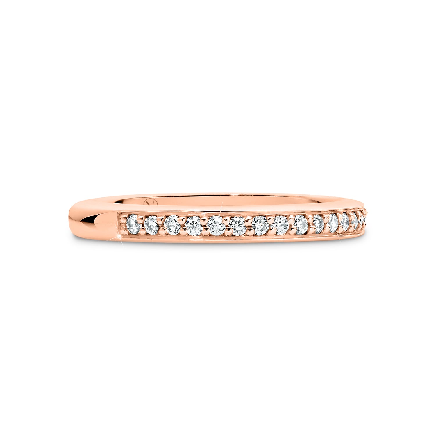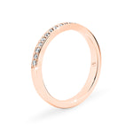 An exquisite bead & bright-cut wedding ring set with 0.19ct tw. of round brilliant cut diamonds extending halfway down the band. A compliment too many engagement rings or perfect as an anniversary ring. Handmade in either 9ct or 18ct rose gold.