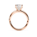 The ideal setting for a timeless yet simple engagement ring. With a sculpted wire basket set on a thin base, this design is sure to highlight the central diamond of your choice. Diamonds adorn the base in the form of a hidden halo and four pear shape prongs hold the diamond in place. Handmade in 9ct or 18ct rose gold.
