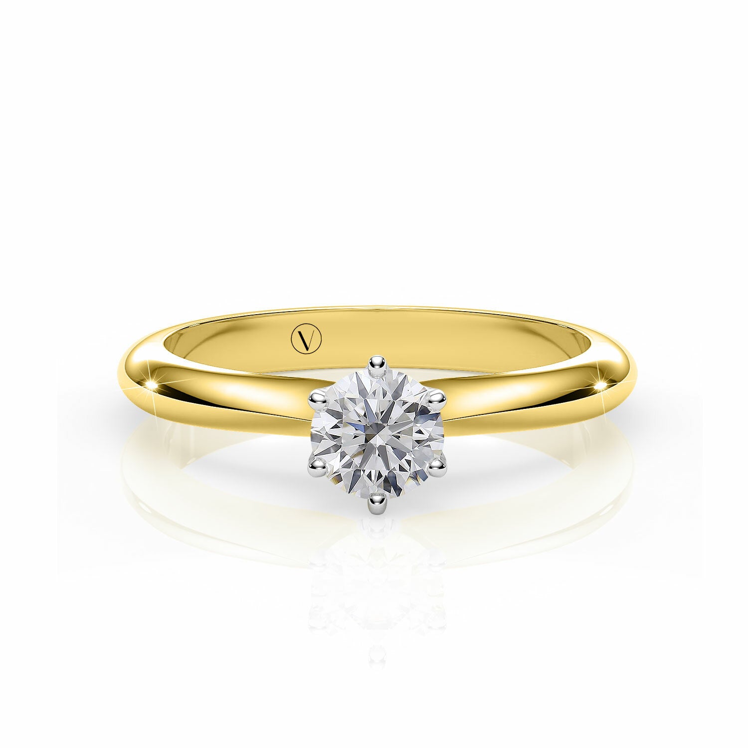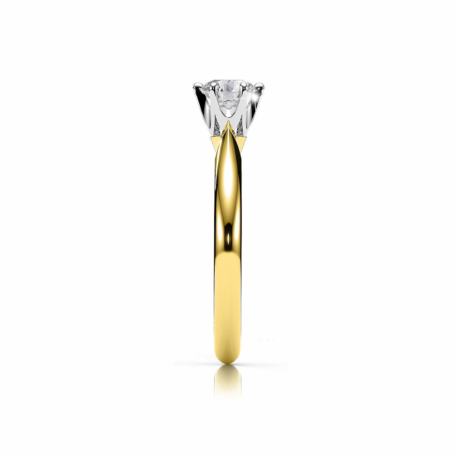 ABI | Six Claw Solitaire Round Brilliant Diamond Ring in Yellow & White Gold