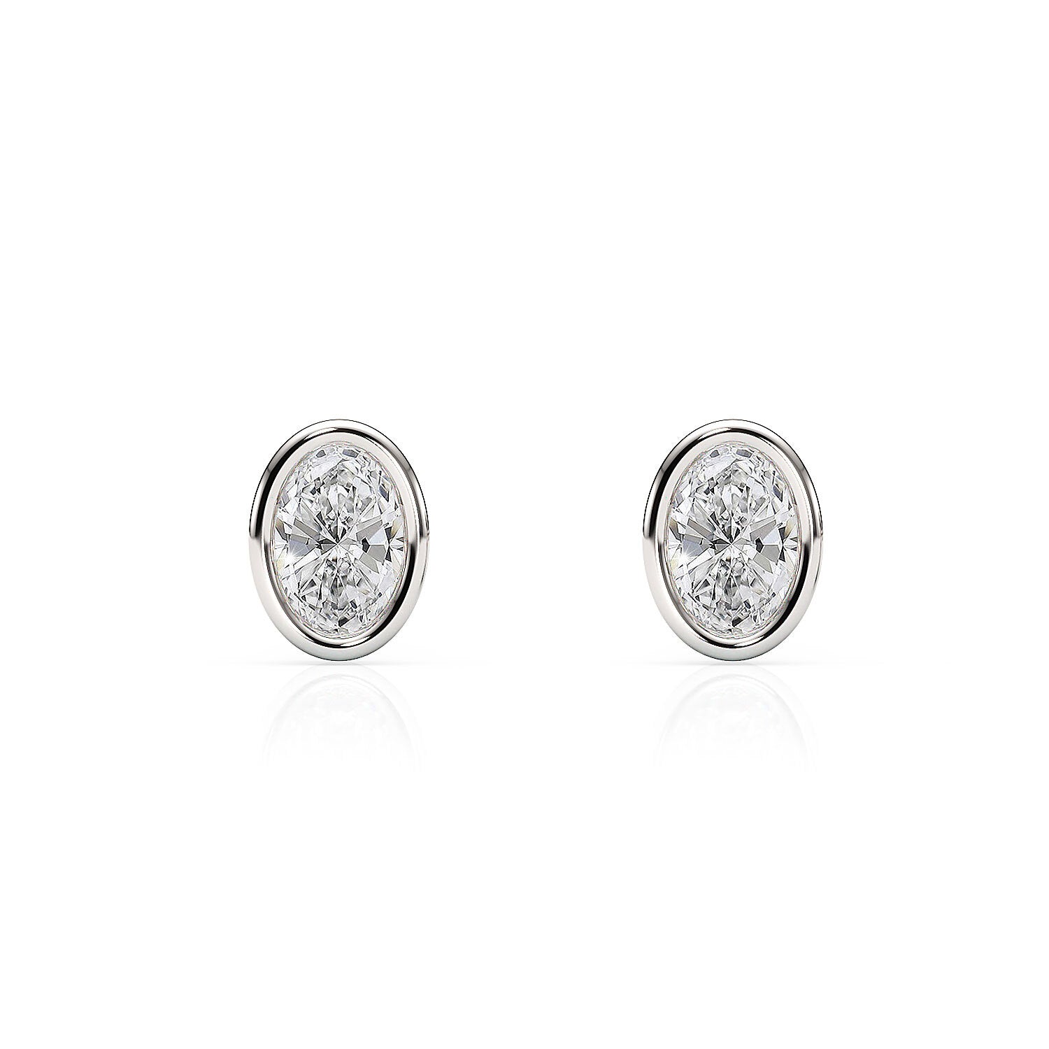 DAKOTA | Oval Shape Diamond Bezel Studs in White Gold (0.60ct tw.)