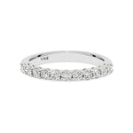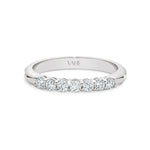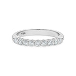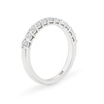 A timeless design that symbolises a lasting love. This beautiful diamond ring graces the finger with sparkling round-brilliant cut diamonds set in delicately sculpted shared prongs. The ring features a double base for added strength, a classic half round band, and is available in 7, 9 or 11 stone variations. Handmade in 9ct or 18ct white gold.