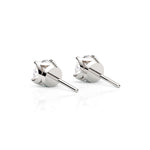 Stud earrings featuring a matching pair of round-brilliant cut diamonds delicately set with four claws. Handmade in 9ct or 18ct white gold. Included with the purchase are two butterfly push back clips measuring 5.5mm.