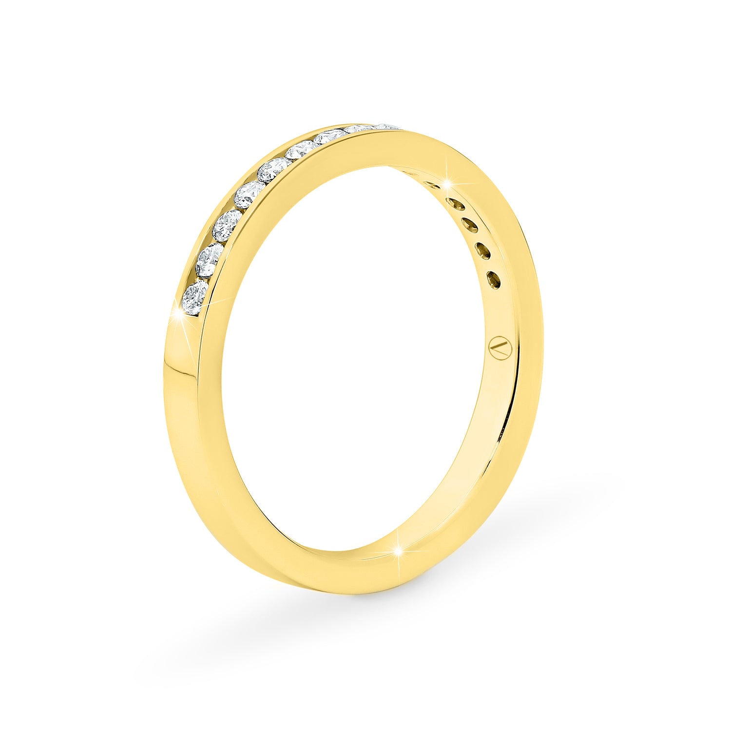 A classically beautiful channel set wedding ring set with 0.25ct tw. of round brilliant cut diamonds. A compliment too many engagement rings or perfect as an anniversary ring. Handmade in 9ct or 18ct yellow gold.