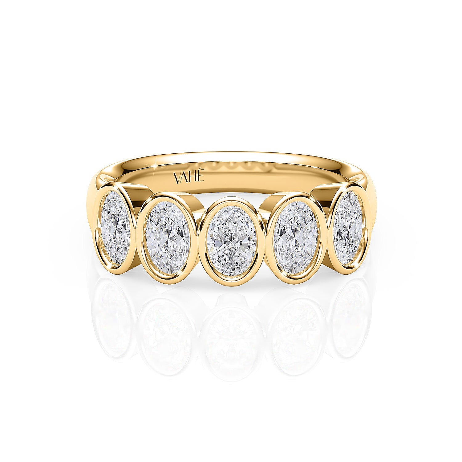 JORJIA | Bezel 5 Stone Oval Shape Diamond Ring in Yellow Gold (1.50ct tw.)
