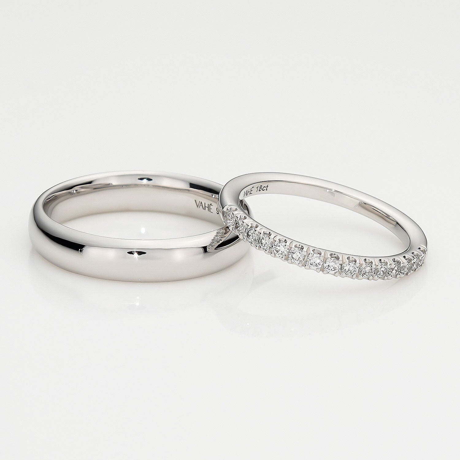 A delicate "V" split wedding ring set with 0.19ct tw. of round brilliant cut diamonds extending halfway down the band. A compliment too many engagement rings or perfect as an anniversary ring. Handmade in either 9ct or 18ct white gold.