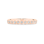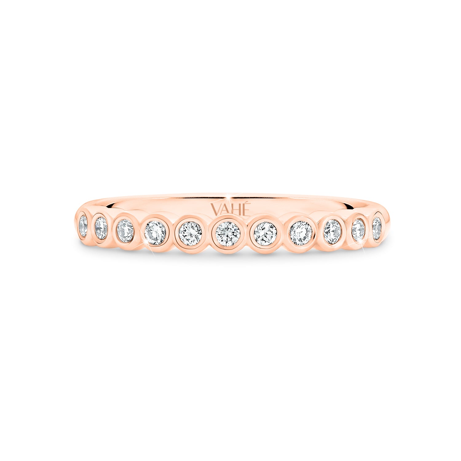 A timeless row of round brilliant cut diamonds each set in a sleek bezel for a clean, modern look. Set with 0.22ct tw. of diamonds, this ring makes a perfect wedding band or a stylish stackable piece. Handmade in 9ct or 18ct rose gold.
