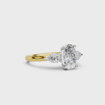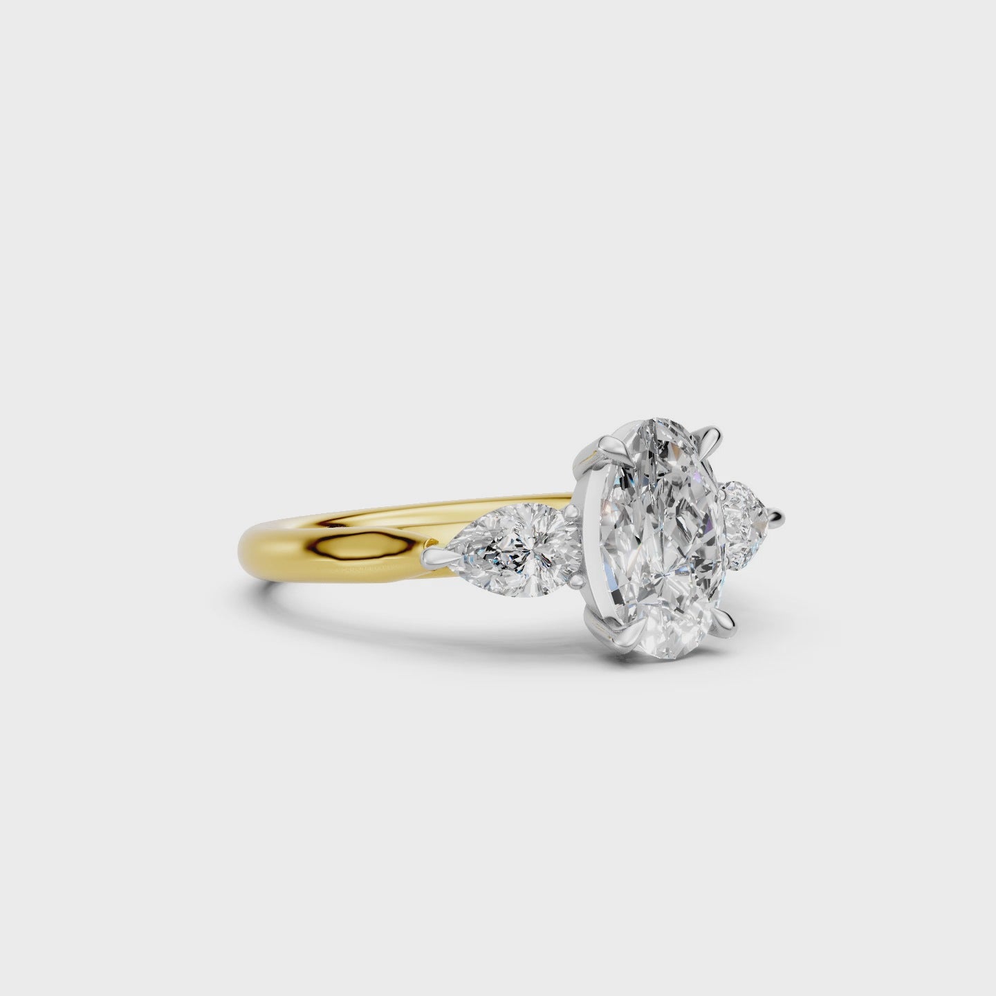 FAYE | Three Stone Oval & Pear Shape Diamond Ring in Yellow & White Gold