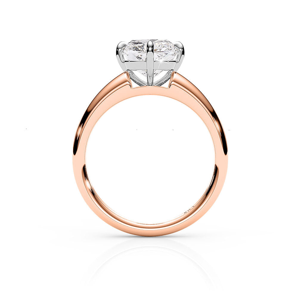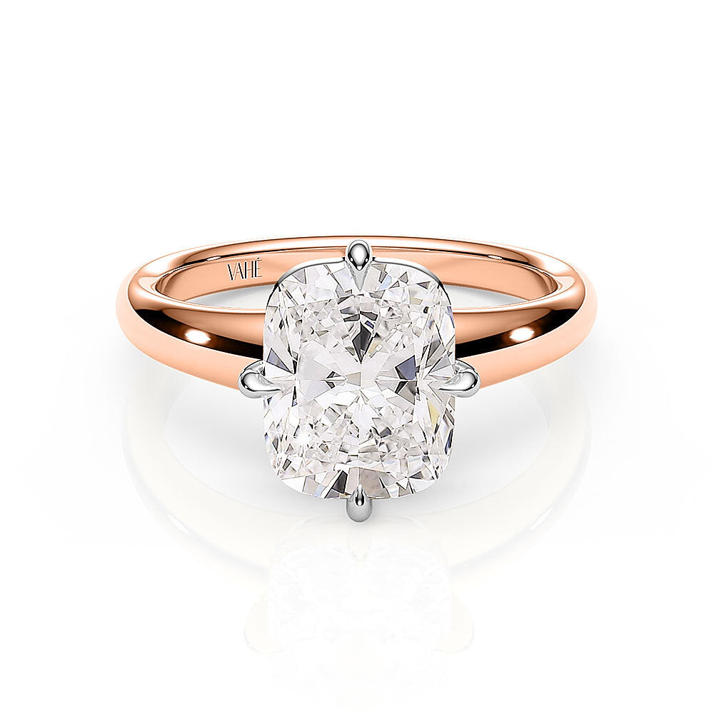 JEMMA | Four Claw Tapered Solitaire Cushion Cut Diamond Ring in Rose & White Gold